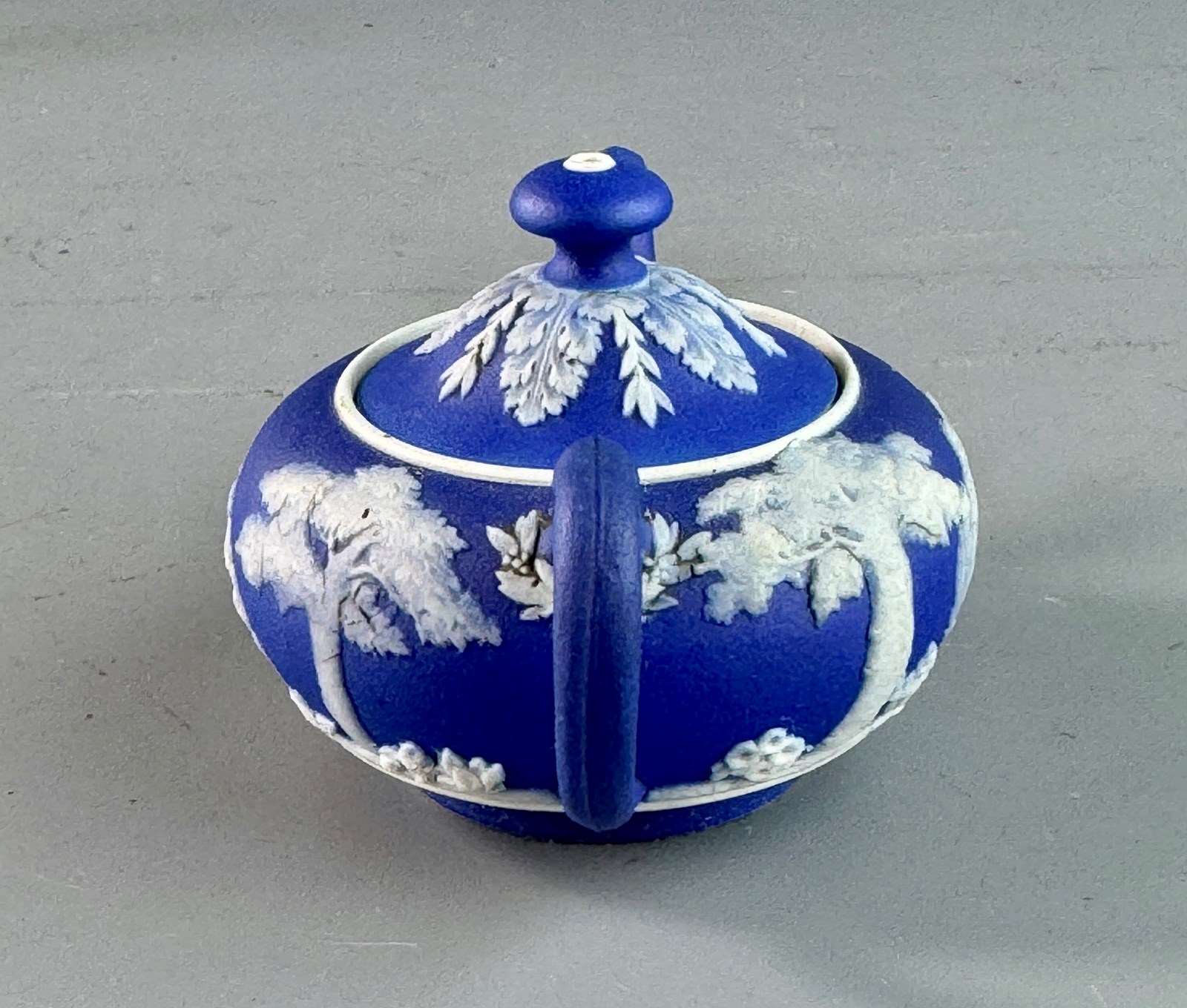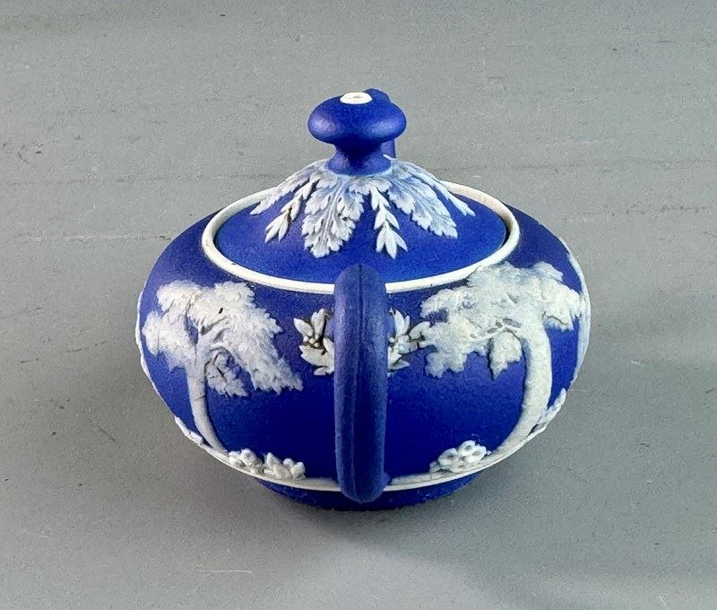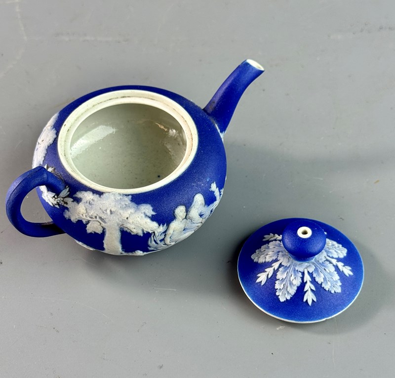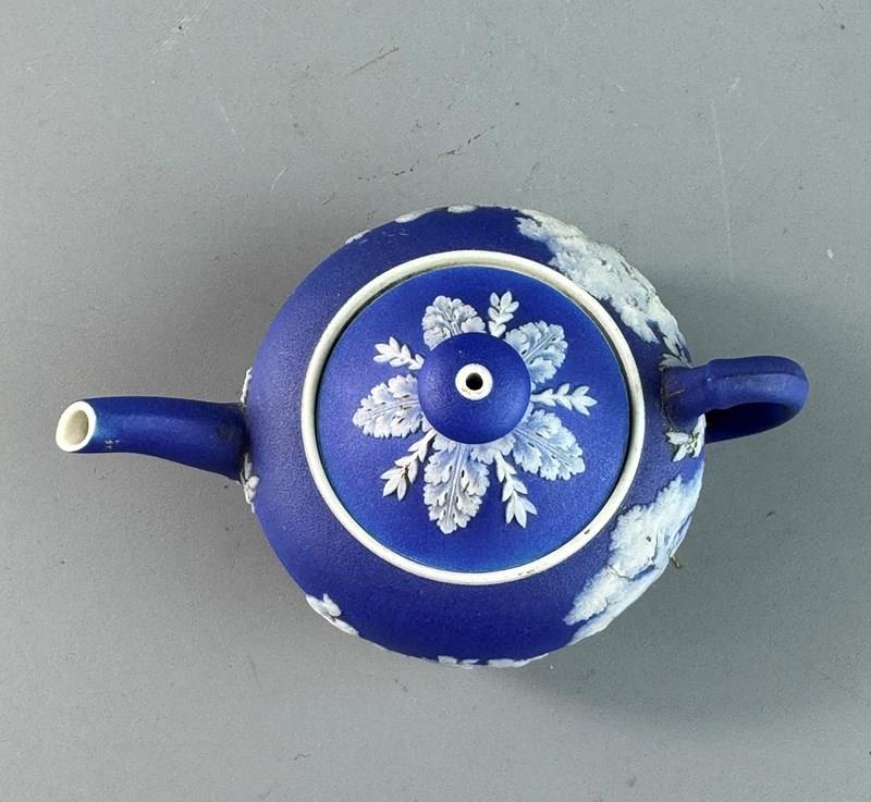 Miniature Wedgwood Blue Jasper Teapot Dated 1886