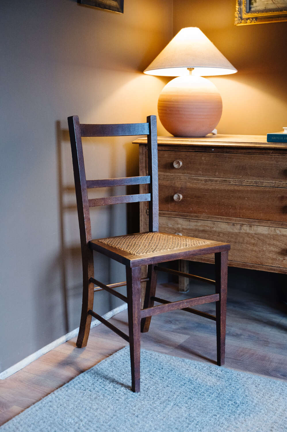 An elegant Edwardian occasional chair with woven cane seat and back. Light in feel yet sturdy in form, it works beautifully in a hall, bedroom or quiet corner. The frame carries a gentle warmth to the wood, and the cane remains in good order with the natural softness you’d expect of age. A graceful, easy piece that adds texture without heaviness.Measurements: 85cm Tall (43cm Seat Height) x 41.5cm Wide x 46cm Deep (36cm sea depth)