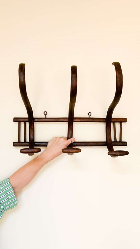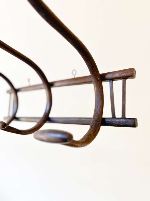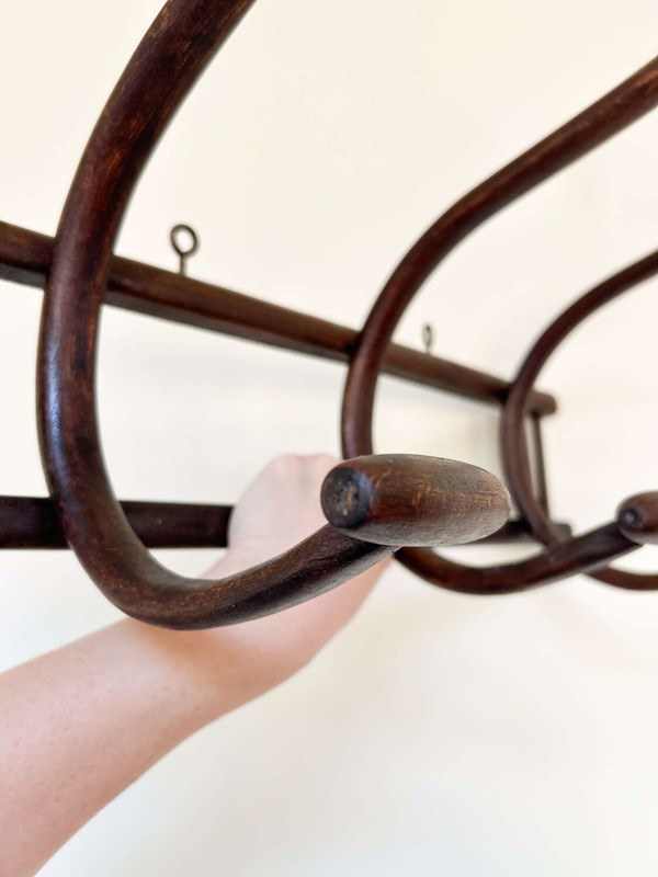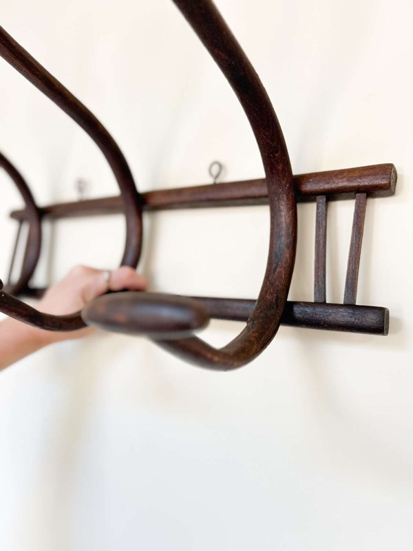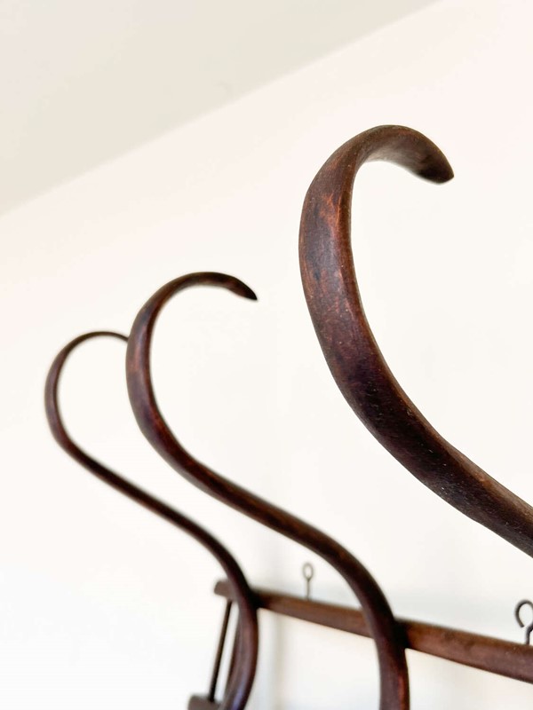 Antique Thonet Style Bentwood Coat Hooks Rack | Curved Wood Wall Hooks