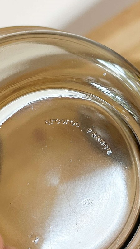 A set of four smoke glass dessert bowls by Arcoroc France, dating from the 1970s. Classic mid-century proportions and soft, smoky tone make them versatile for fruit, puddings, or simple table styling. The subtle weight and gentle translucence catch the light beautifully, bringing understated elegance to everyday use or a special table.Measurements: 5cm Tall x 14.5cm Wide x 14.5cm Deep