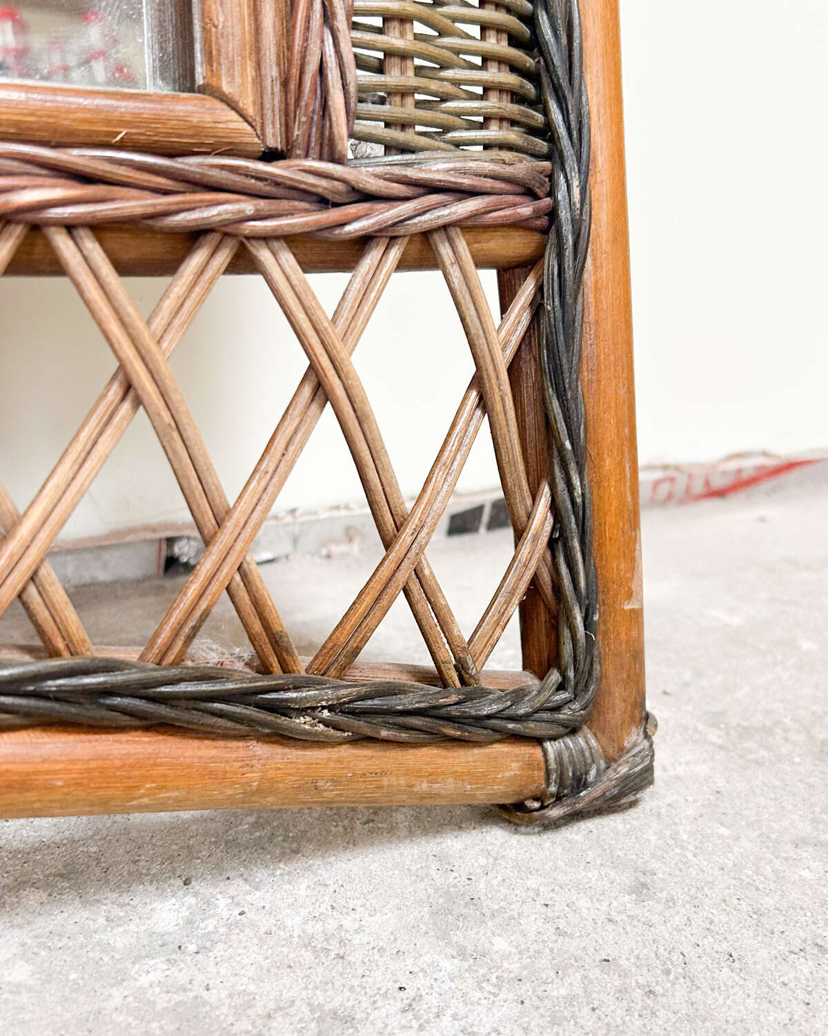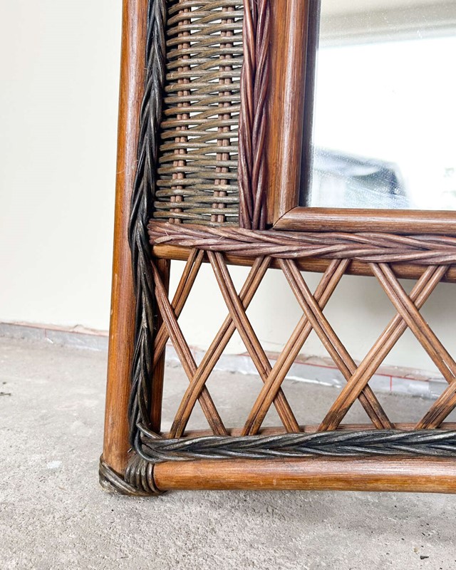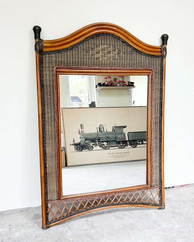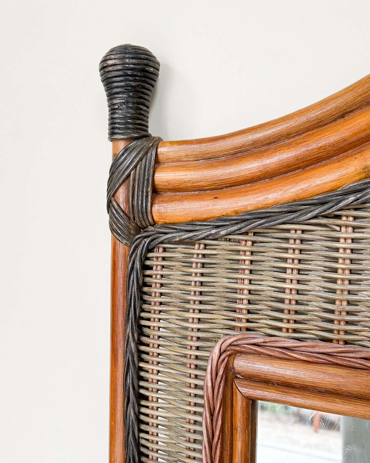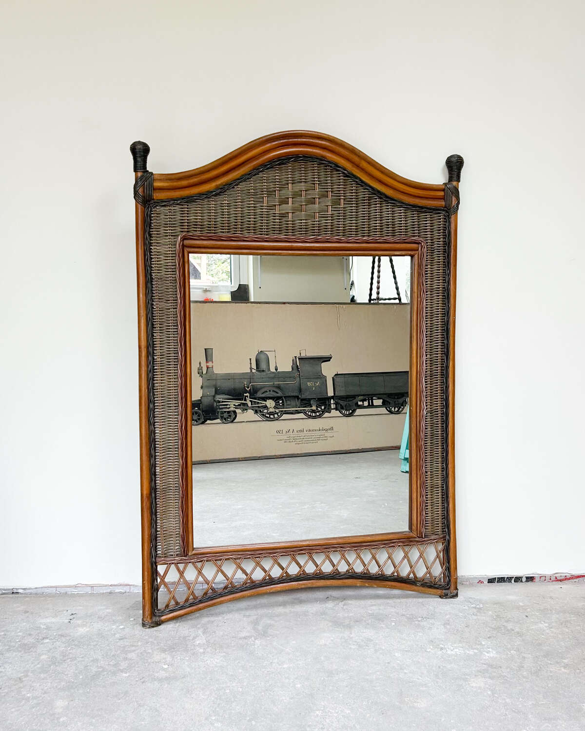 A charming mid-century rattan mirror, perfect for adding warmth and texture to a space.