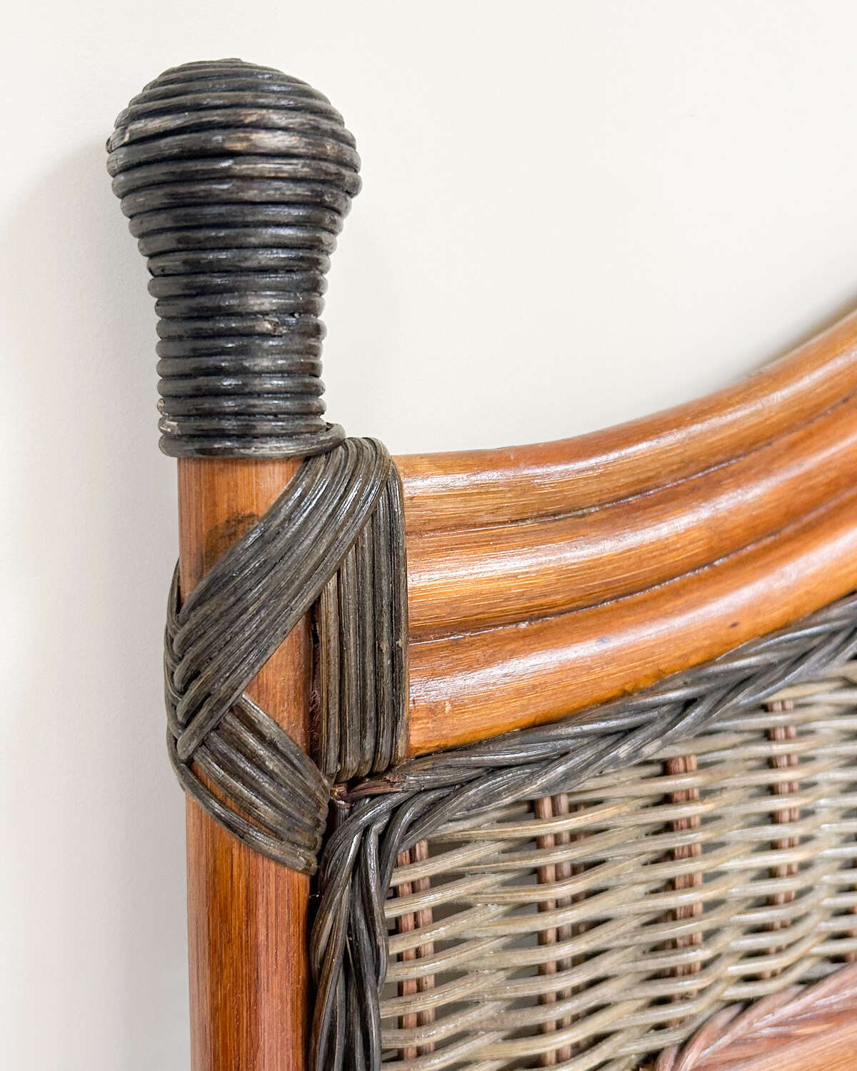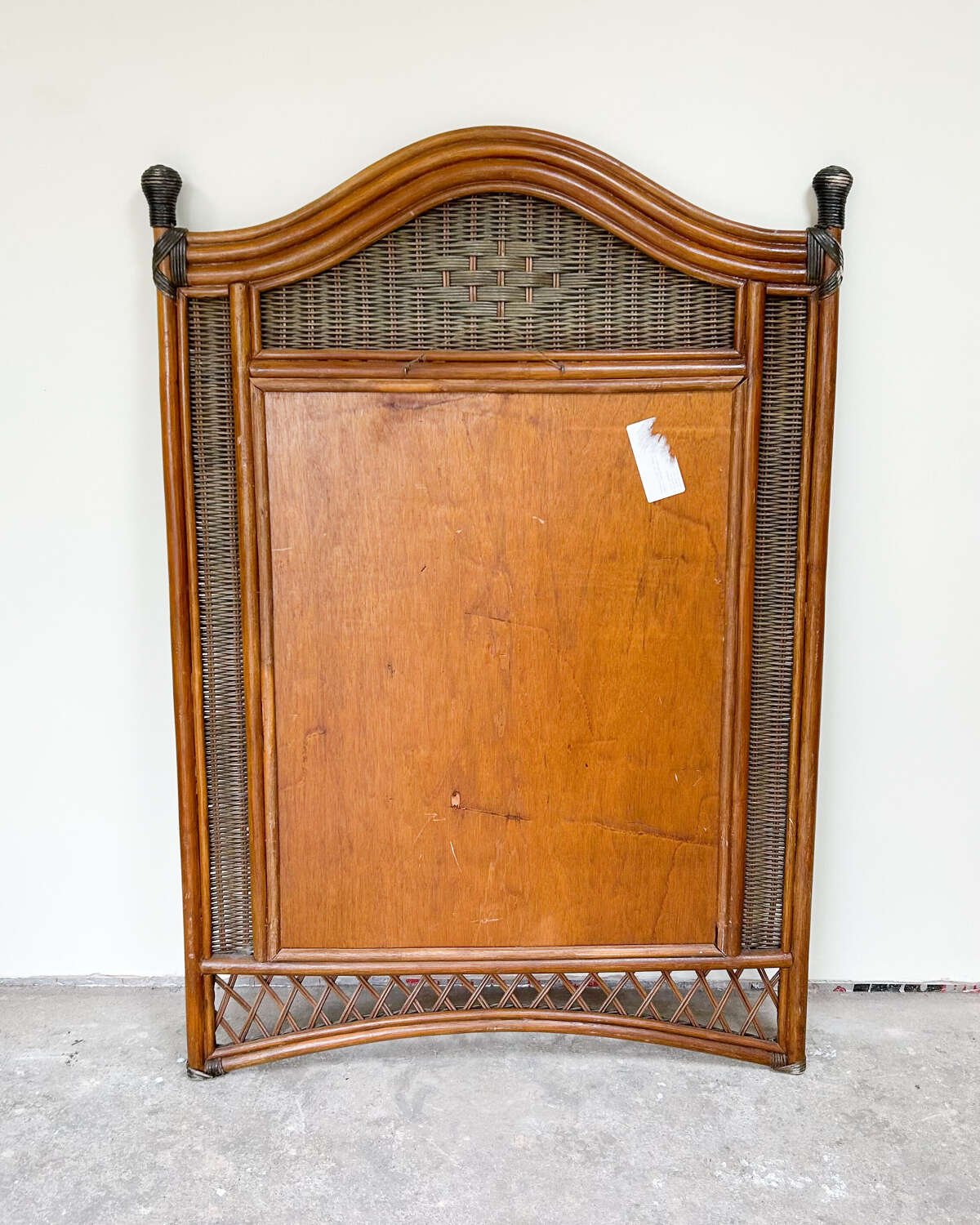 The natural rattan frame features intricate patterned detailing that elevates its simple form with a touch of artisan craftsmanship.Lightweight yet full of character, this piece works beautifully in hallways, bedrooms, or layered into a gallery wall. A lovely nod to mid-century bohemian style. Excellent vintage condition with minor signs of age.