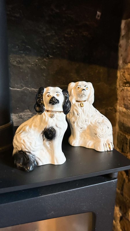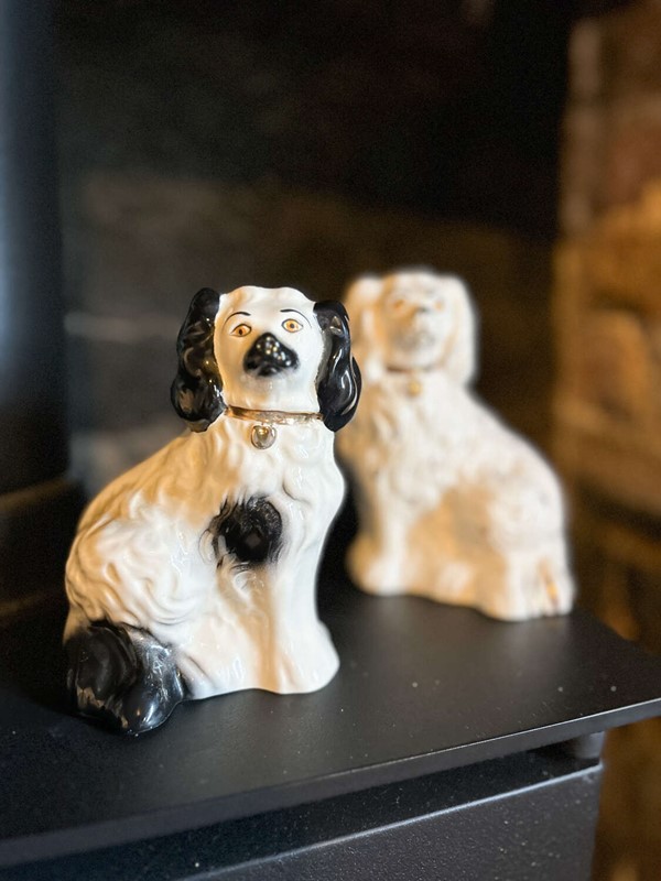 Pair Of Beswick Staffordshire Spaniel Figurines | Black & White, Gold & White