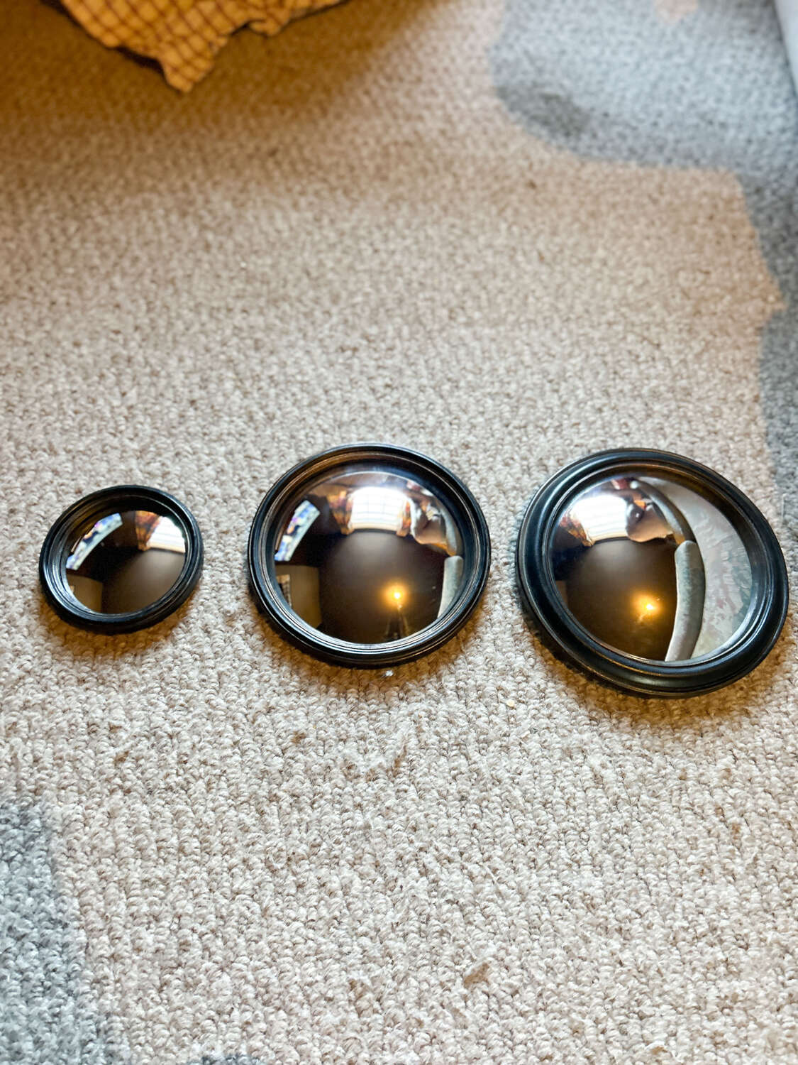 Set of 3 French Convex Mini Mirrors | Black Frames – 3 Sizes