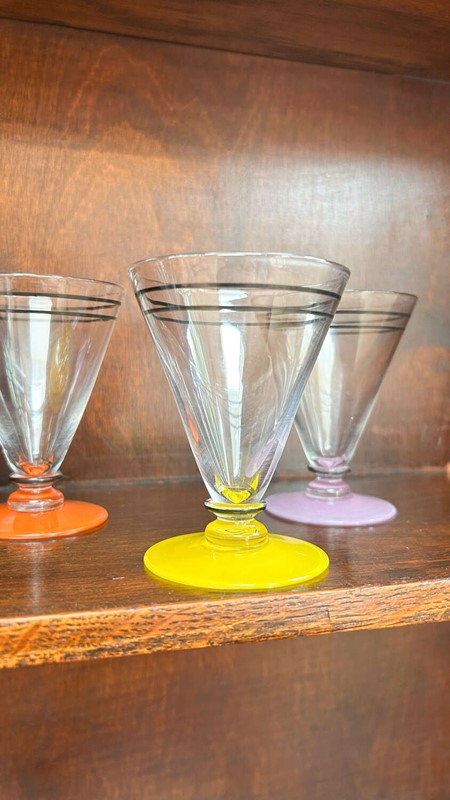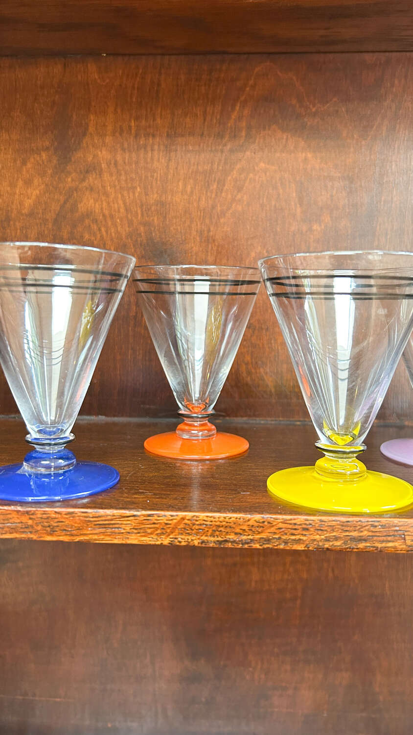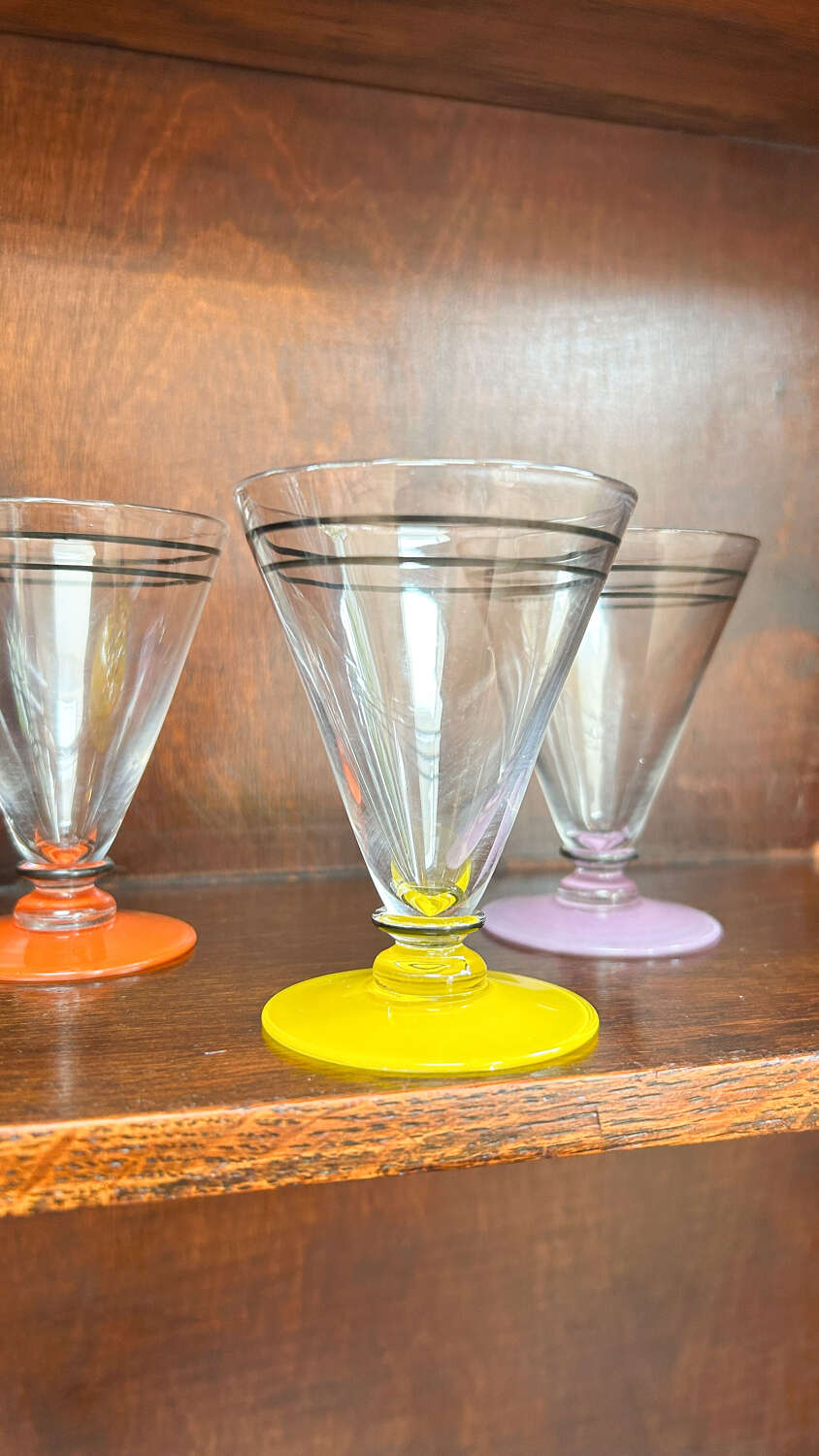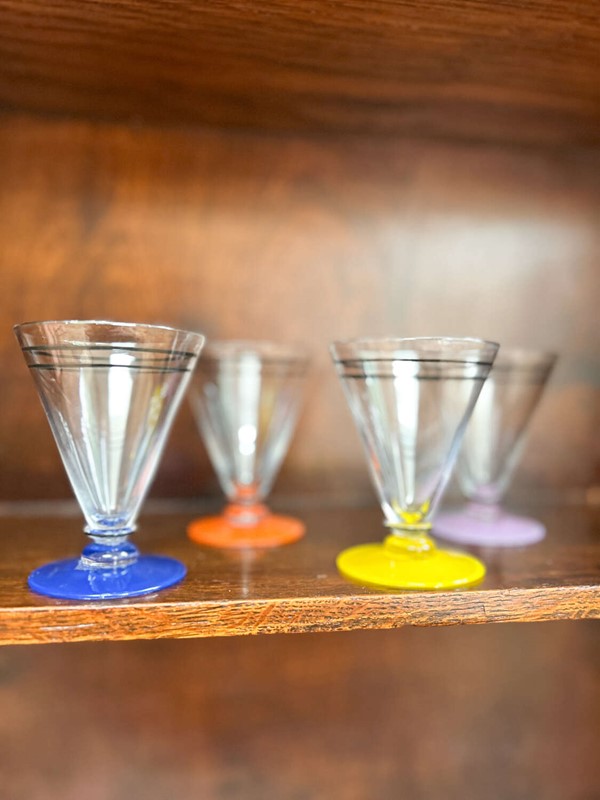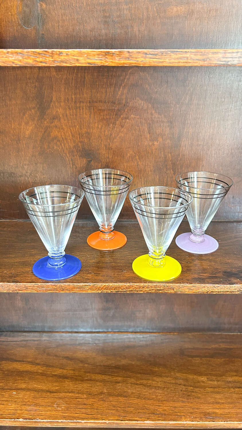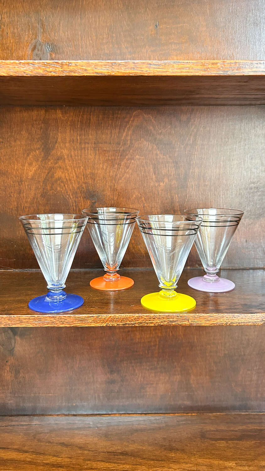Set of 4 Mid Century Modern Coloured Cocktail Glasses