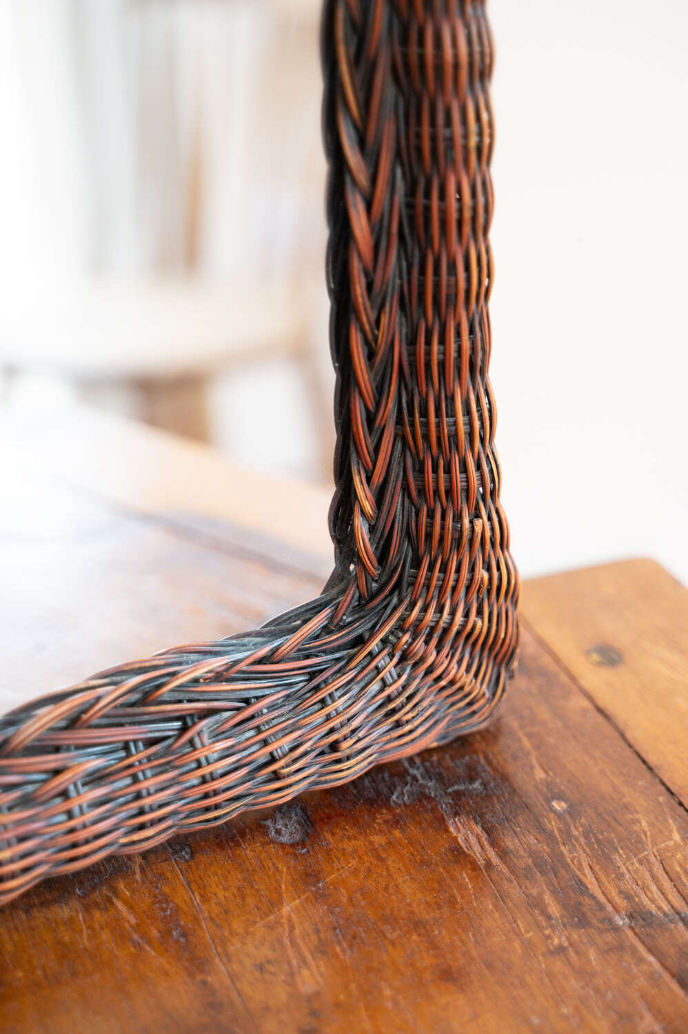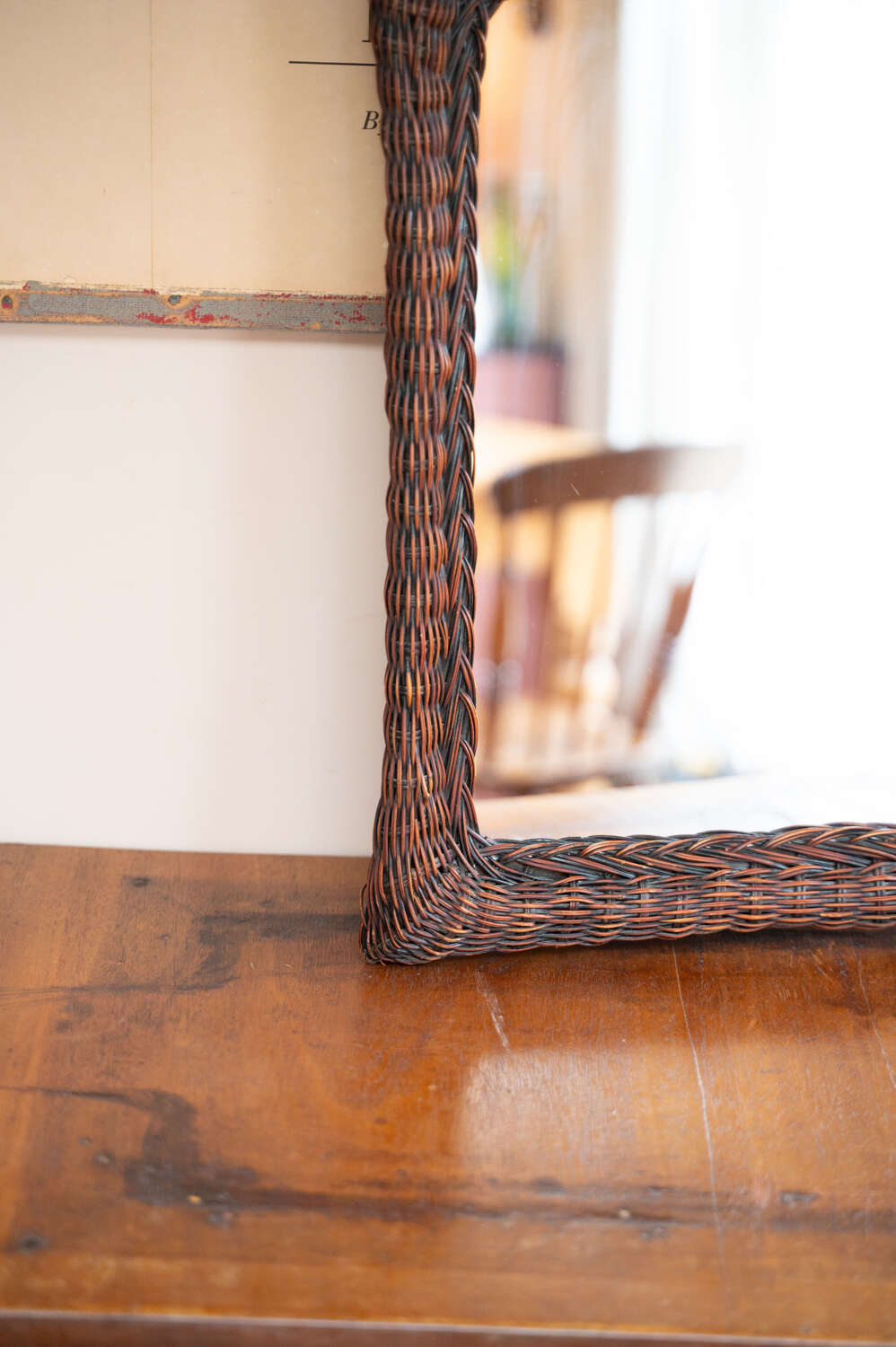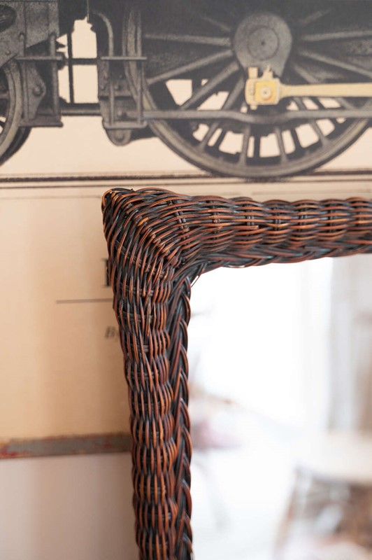 Vintage Dark Woven Rattan Wall Mirror