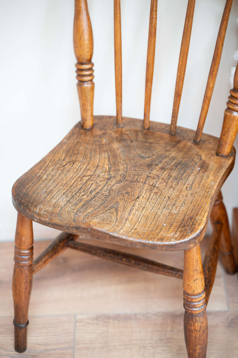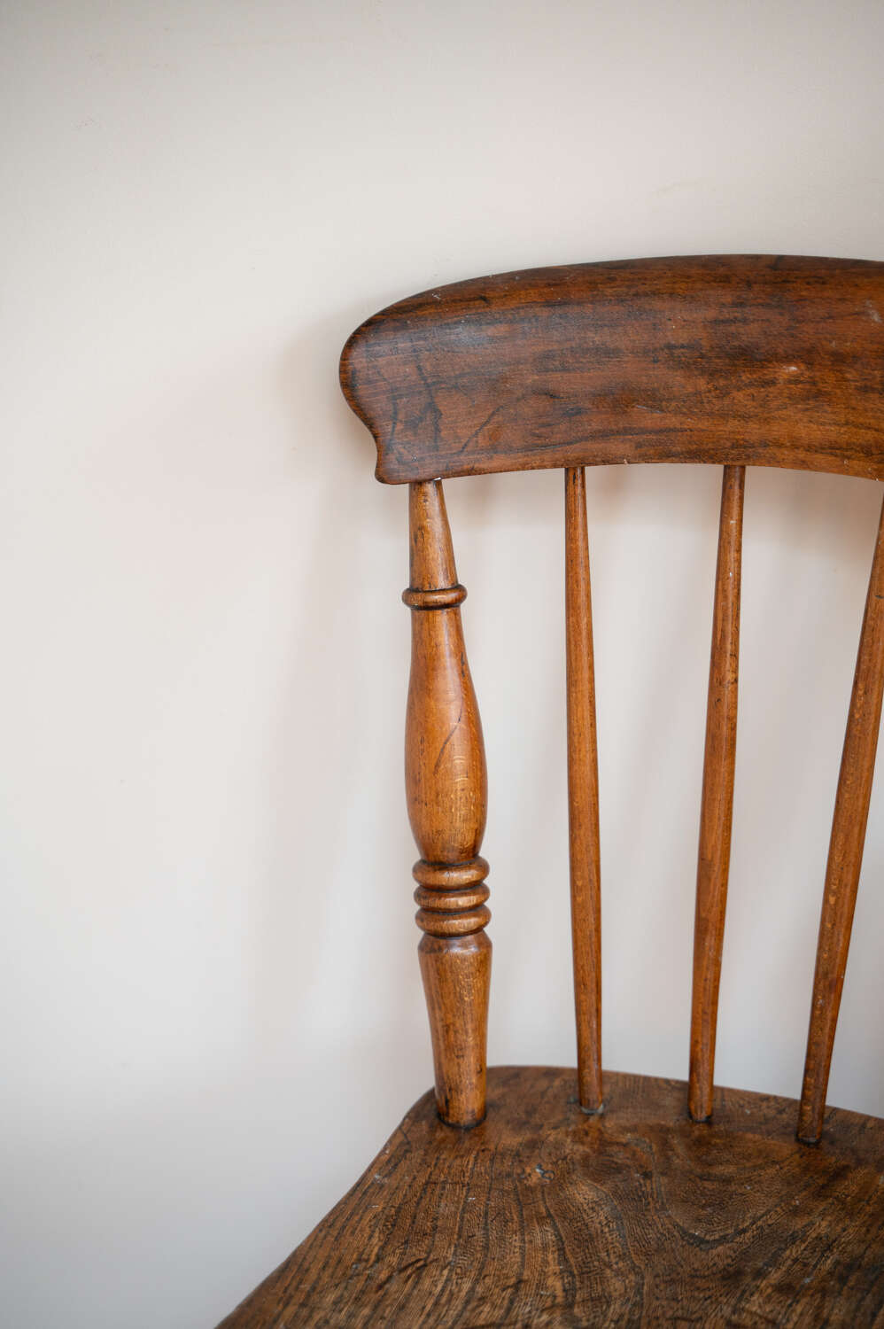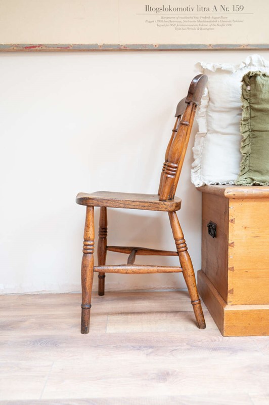 A well-used and characterful farmhouse dining chair with a simple, honest design. The solid wooden frame and timeworn finish give it that relaxed, lived-in feel typical of traditional country furniture. Showing natural wear and variation in tone, it carries the kind of patina that adds warmth and authenticity to a space. Structurally sound and ready for everyday use. A versatile piece, ideal around a table or used on its own within a layered interior.Measurements: 84.5cm Tall (44.5cm Seat height) x 36cm Wide x 48cm Deep
