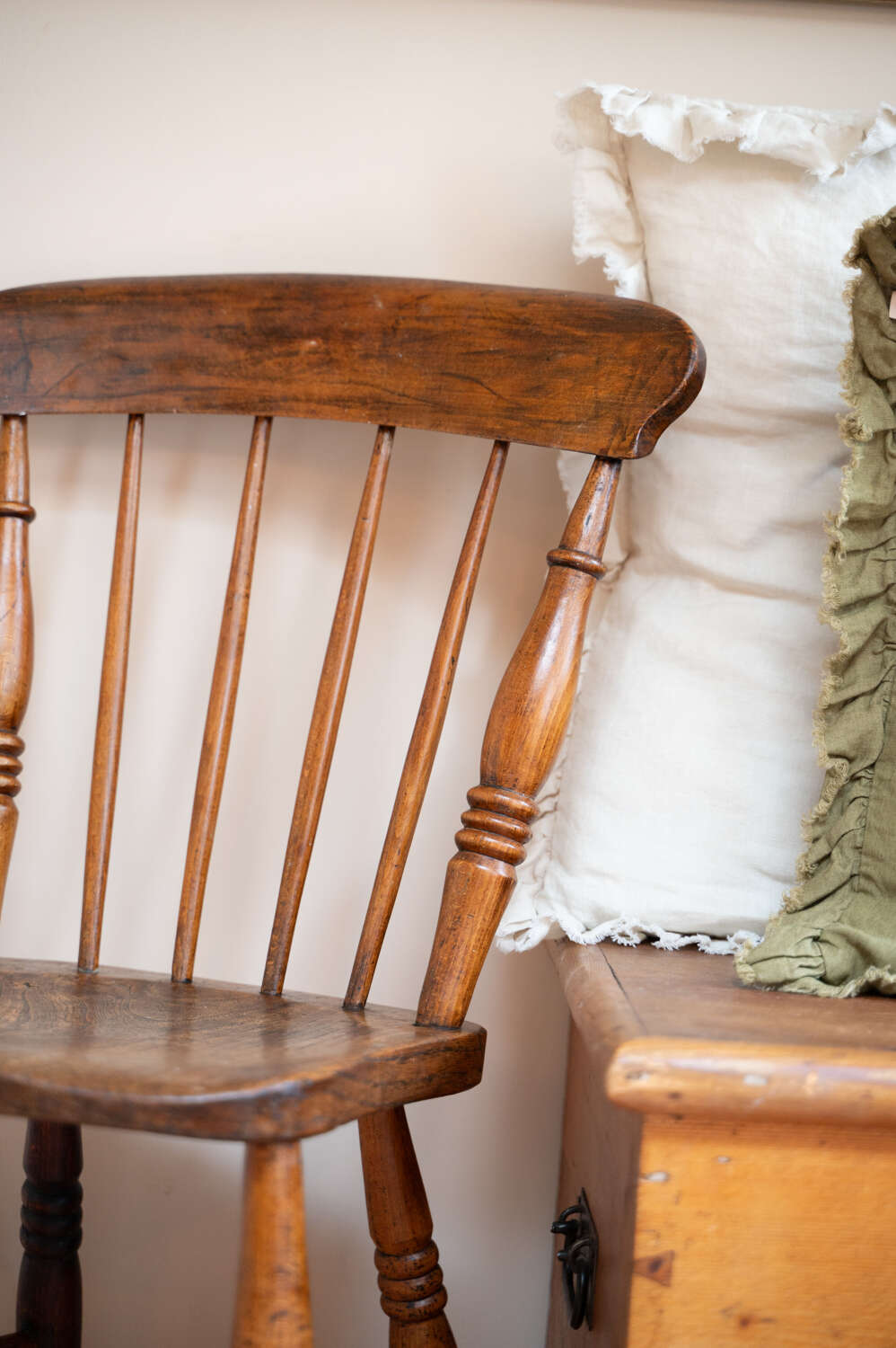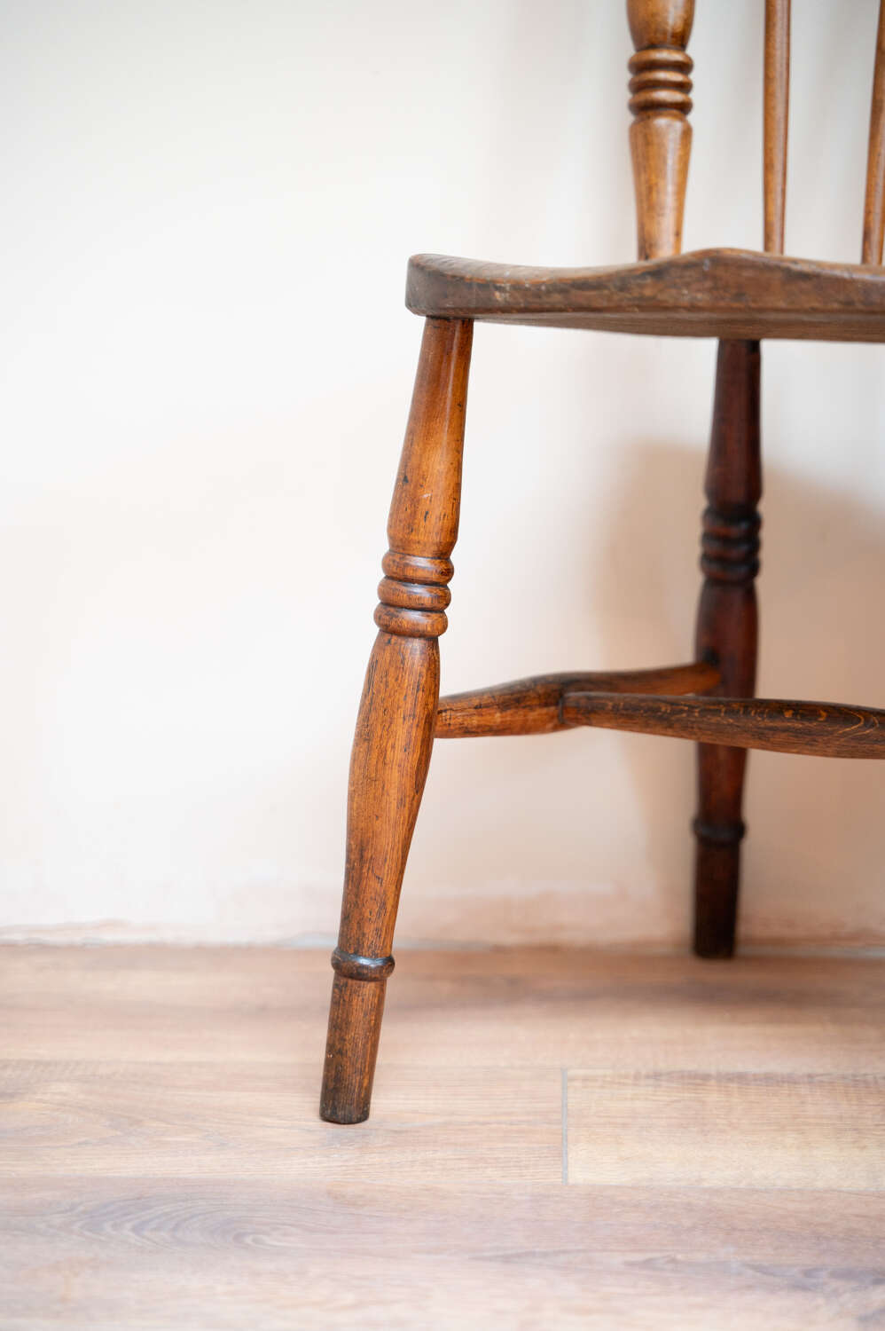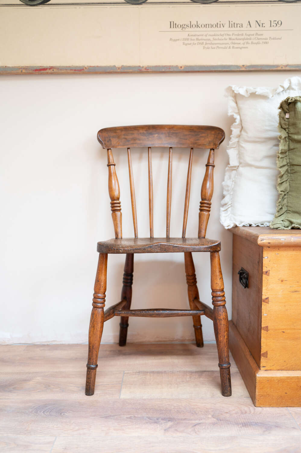 A well-used and characterful farmhouse dining chair with a simple, honest design. The solid wooden frame and timeworn finish give it that relaxed, lived-in feel typical of traditional country furniture. Showing natural wear and variation in tone, it carries the kind of patina that adds warmth and authenticity to a space. Structurally sound and ready for everyday use. A versatile piece, ideal around a table or used on its own within a layered interior.Measurements: 84.5cm Tall (44.5cm Seat height) x 36cm Wide x 48cm Deep