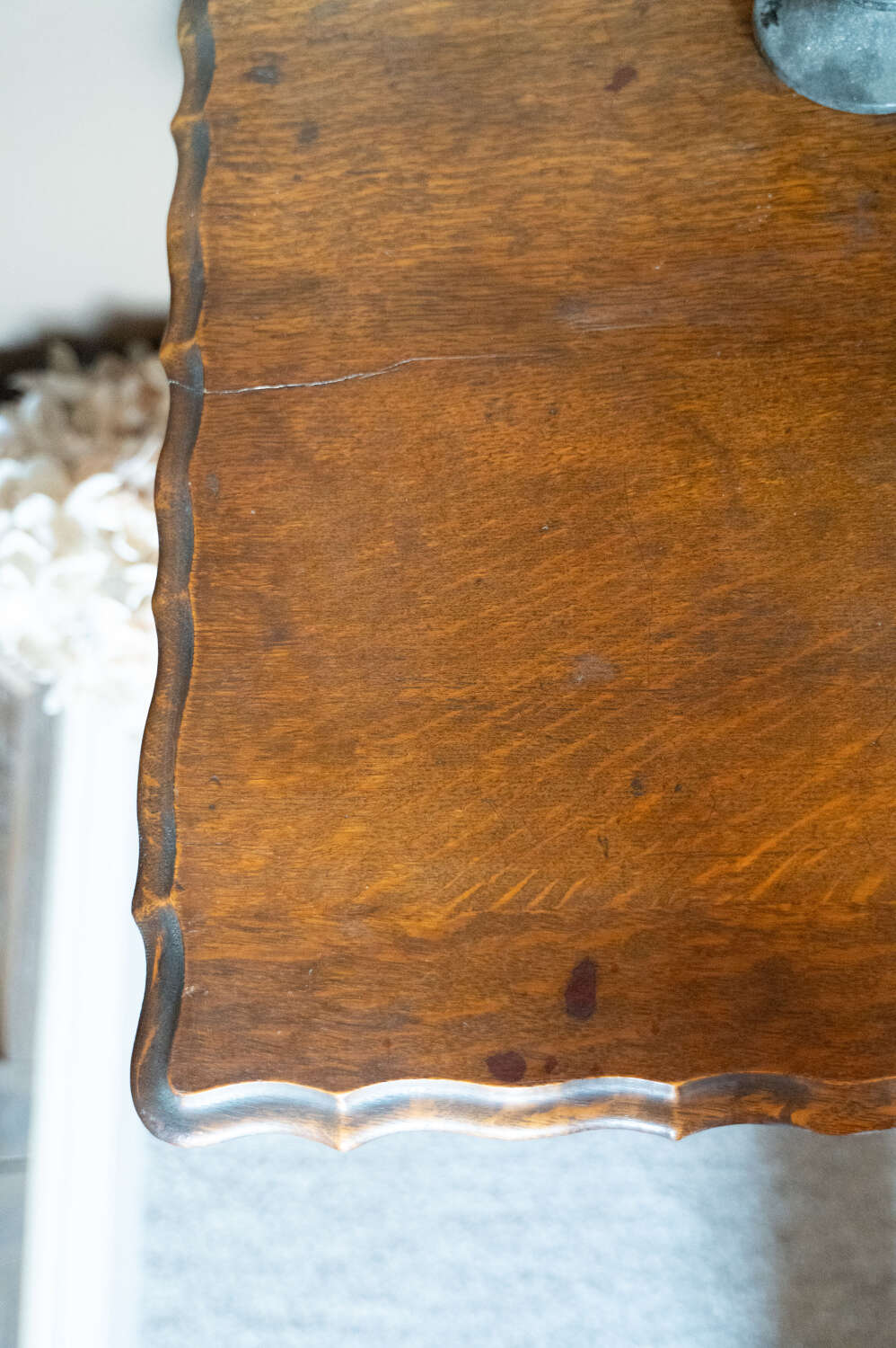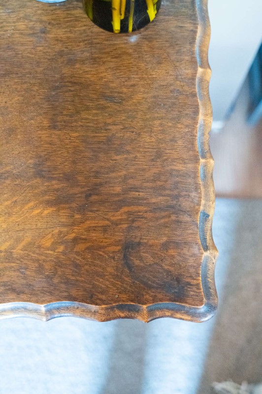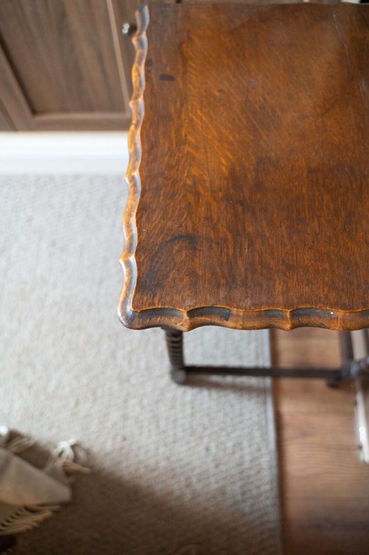 A charming vintage oak occasional side table with a square top, beautifully turned barley twist leg and classic pie crust edging. Solid and well-proportioned, its square form makes it especially practical for placing beside a sofa or armchair, or for use as a lamp table. The oak has a warm, mellow tone throughout, with gentle surface markings to the top that sit comfortably with the piece’s age and character. Overall in good condition, sturdy and ready to use. A timeless and versatile piece that works effortlessly in both traditional and eclectic interiors.Measurements: 71.5cm Tall x 50cm Wide x 50cm Deep