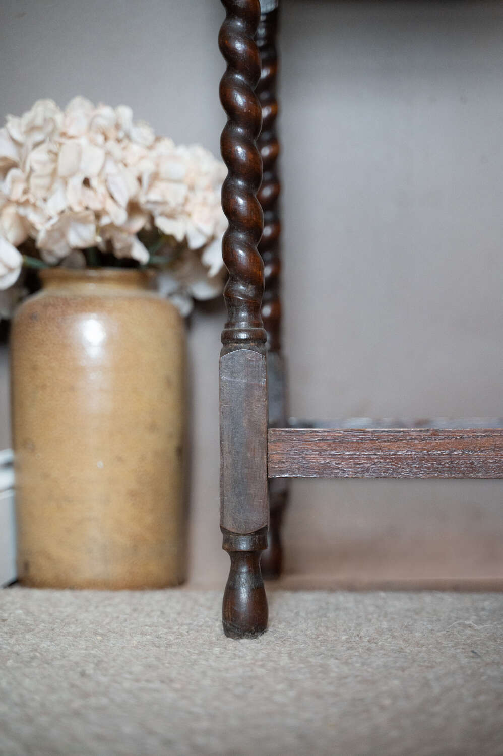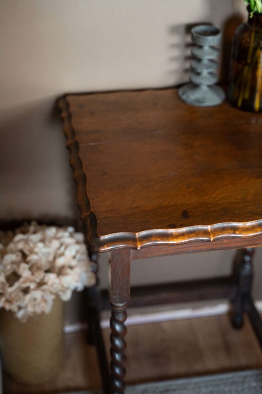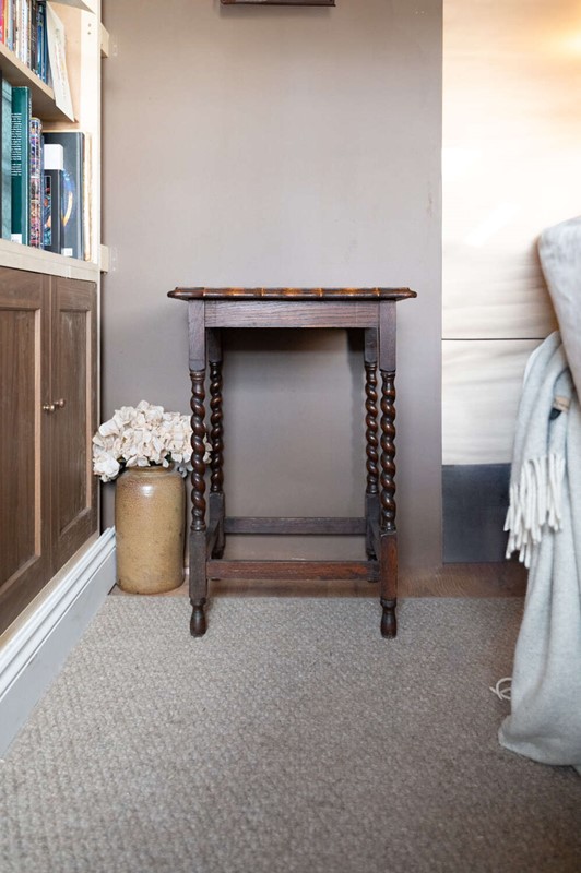 Vintage Oak Square Barley Twist Side Table