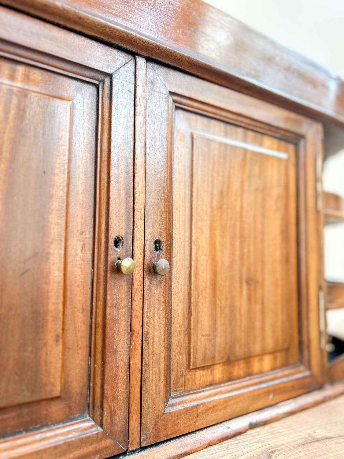 Charming wall-mounted mahogany cabinet, ideal for bathrooms, bedrooms, or as a decorative trinket display.
