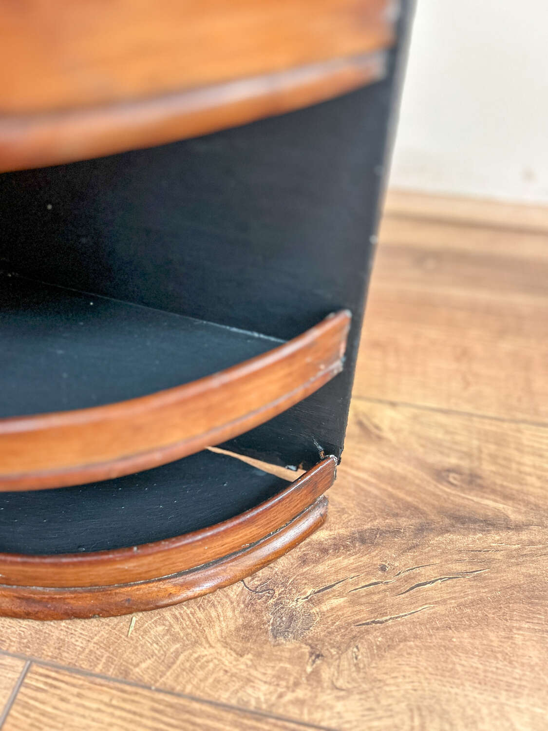 Classic proportions and rich wood grain make it a timeless addition to any space. Minor break to the bottom back right corner, not visible when hung and does not affect use.