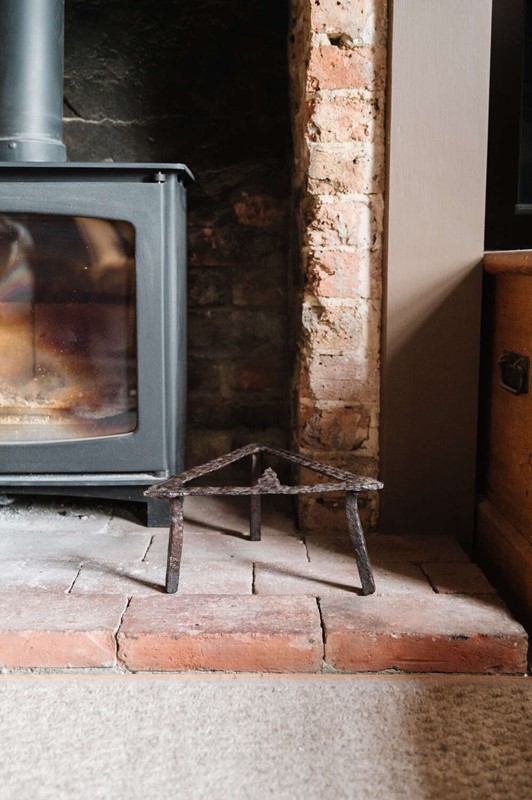 A simple tripod stand in wrought iron, designed to hold your fireside tools with quiet practicality. Minimalist in form, its gentle patina and sturdy build bring a subtle, enduring presence to the hearth.Measurements: 14cm Tall x 30cm Wide x 26cm Deep