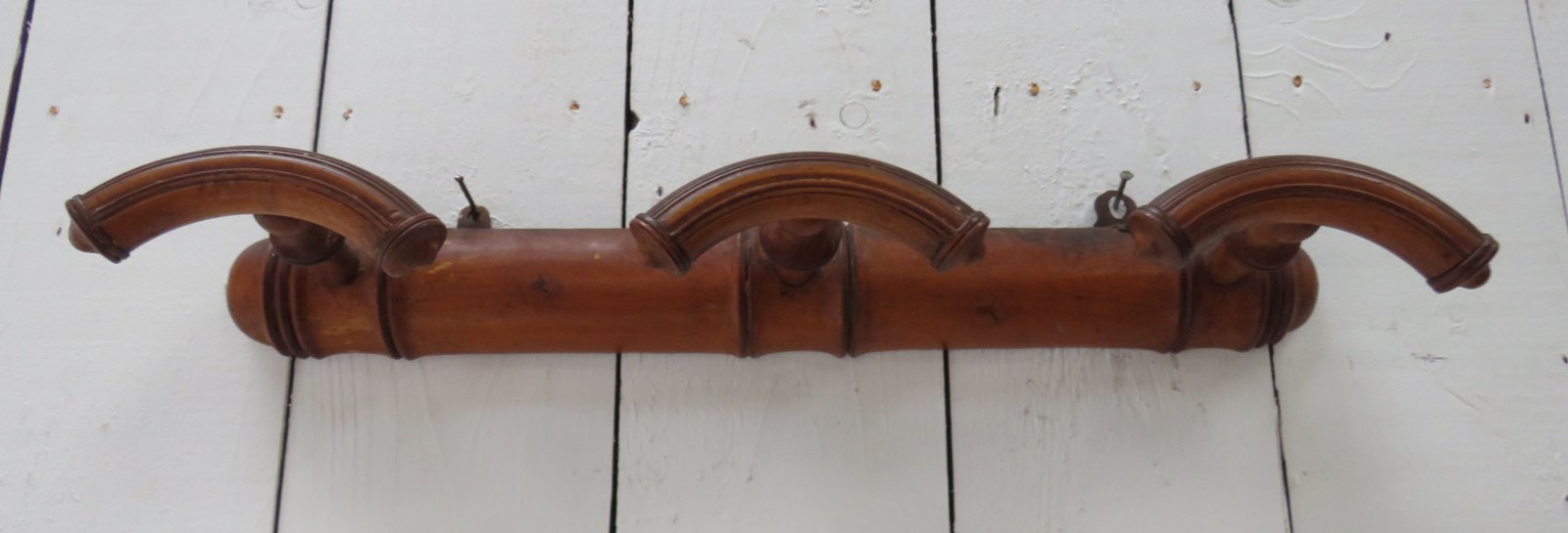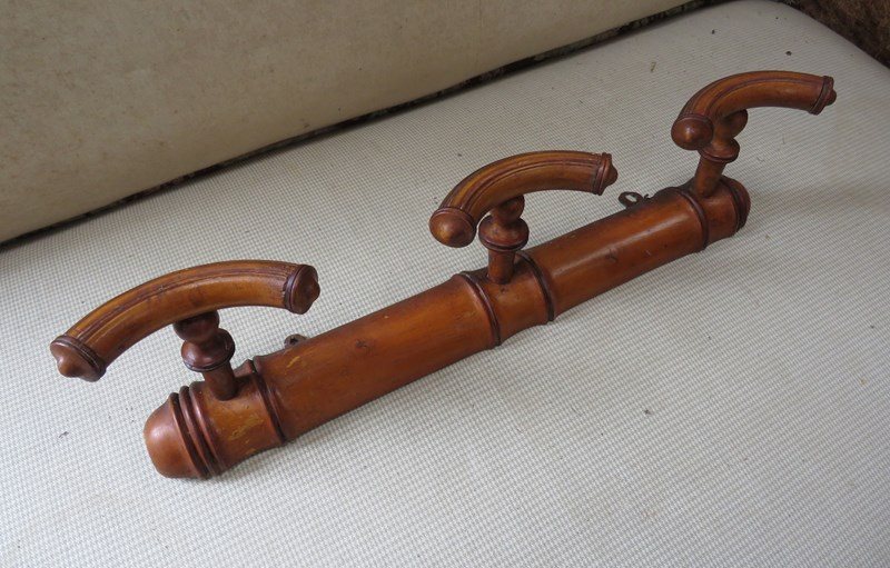 Shapely set of late 19th century, early 20th century French decorative faux bamboo coat hooks ready to hang.