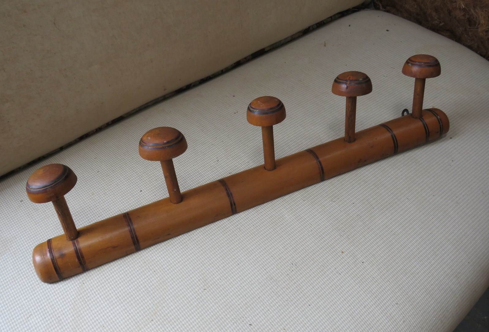 Shapely set of late 19th century, early 20th century French decorative faux bamboo coat hooks ready to hang.