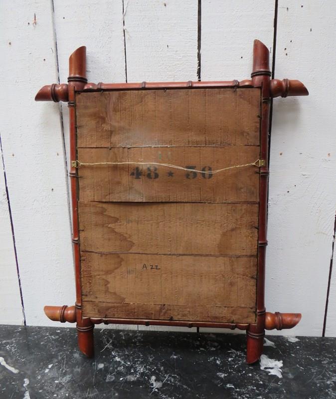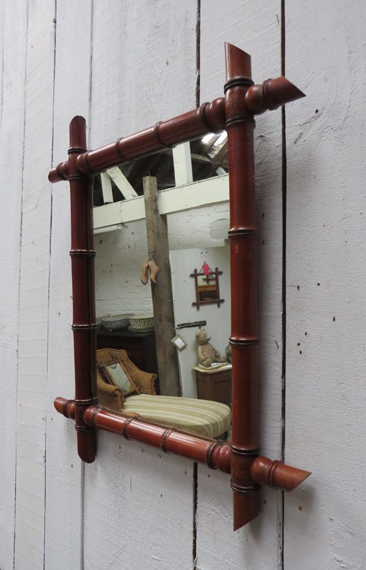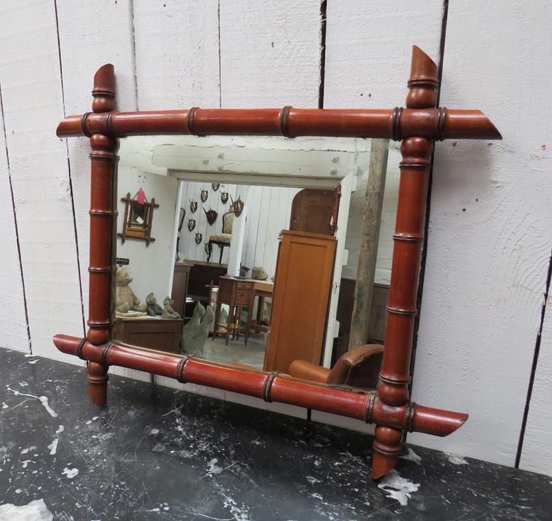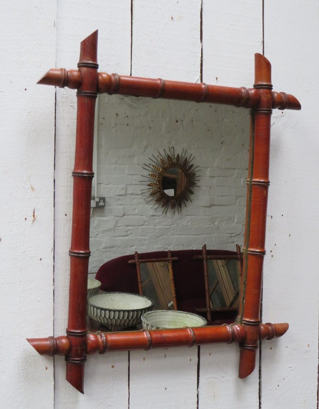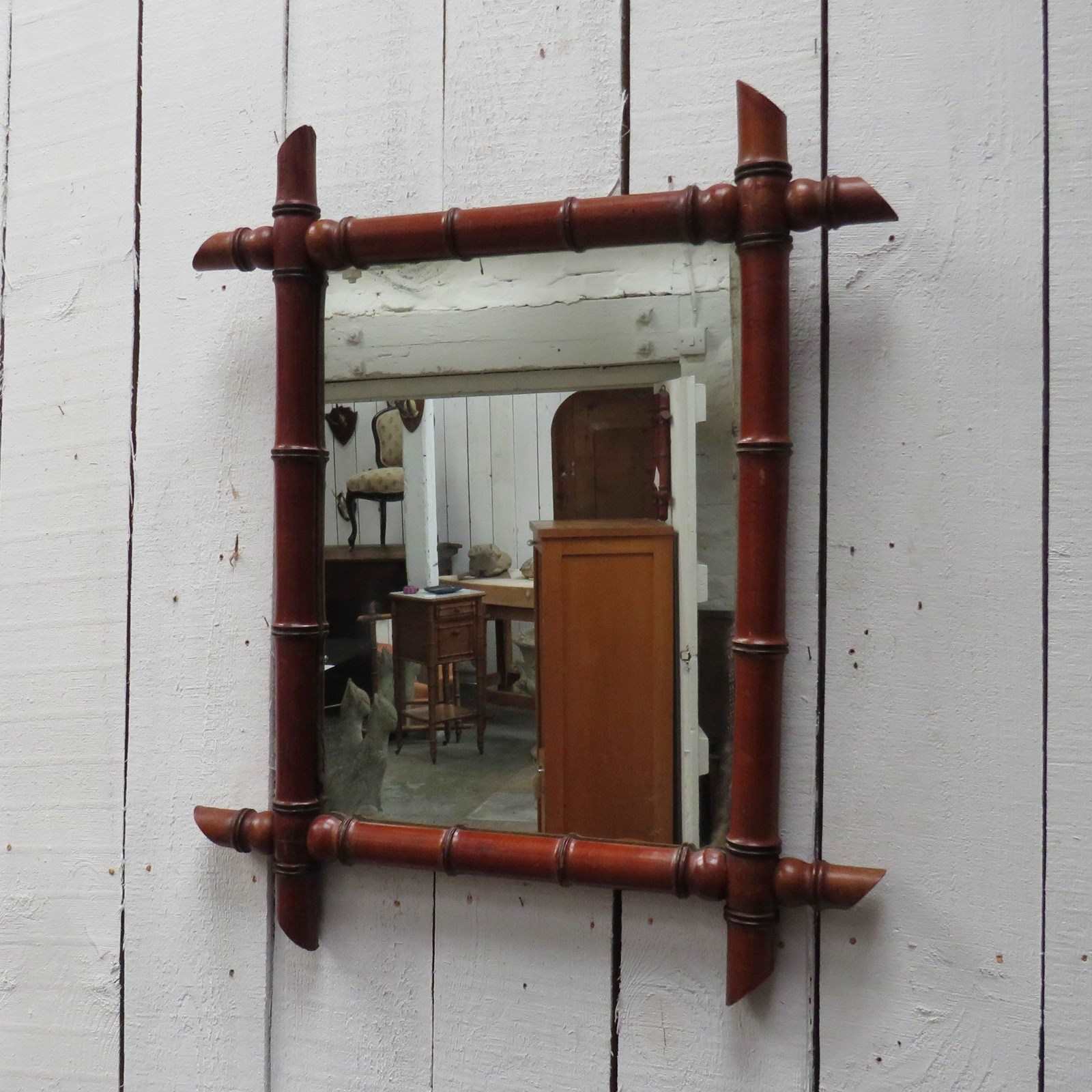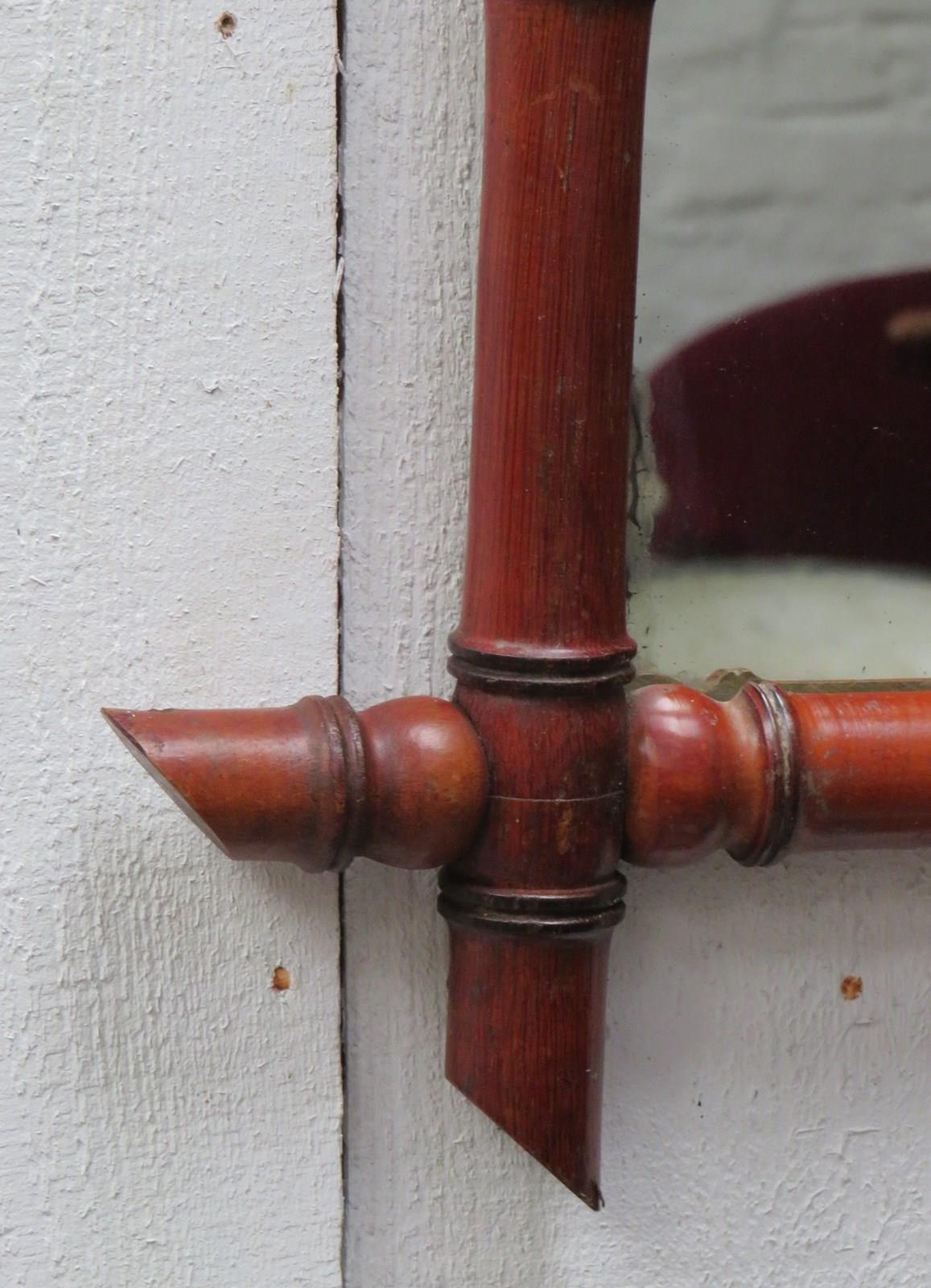 Late 19th century, early 20th century French decorative faux bamboo wall mirror ready to hang. Foxing to the original glass plate.