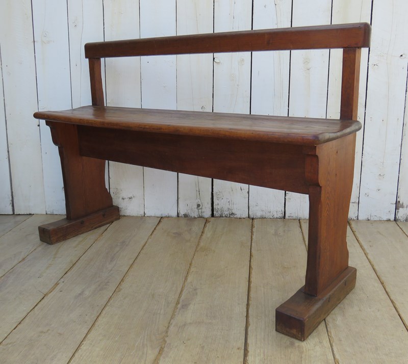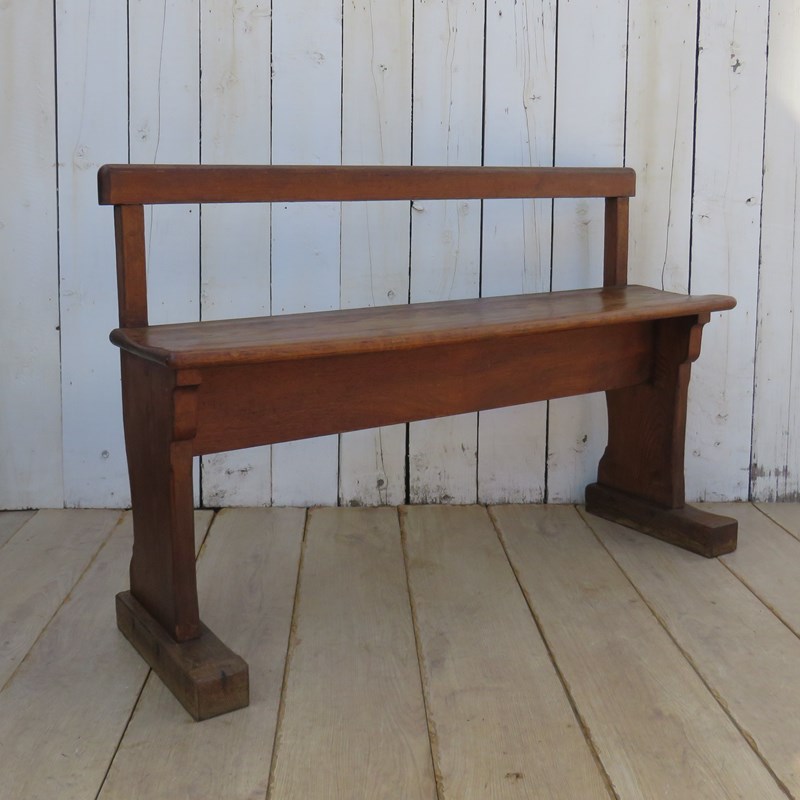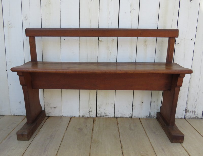 Shapely, sound and sturdy late 19th century, early 20th century French hall bench. Seat height 48cm & seat depth 26cm.