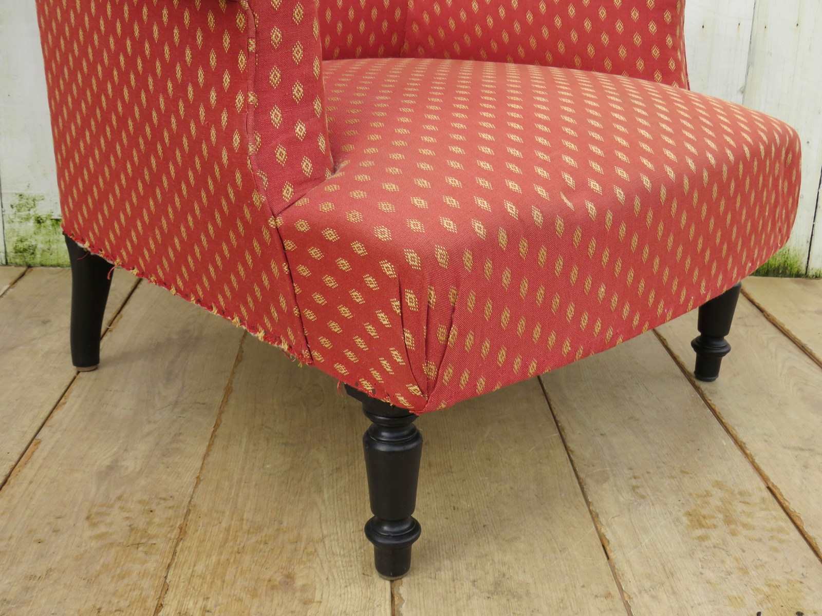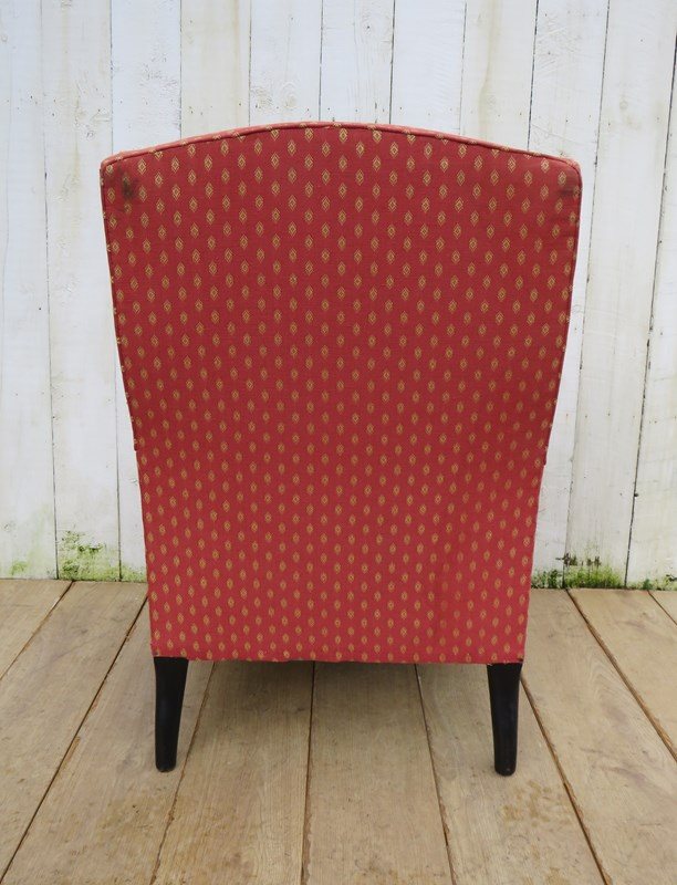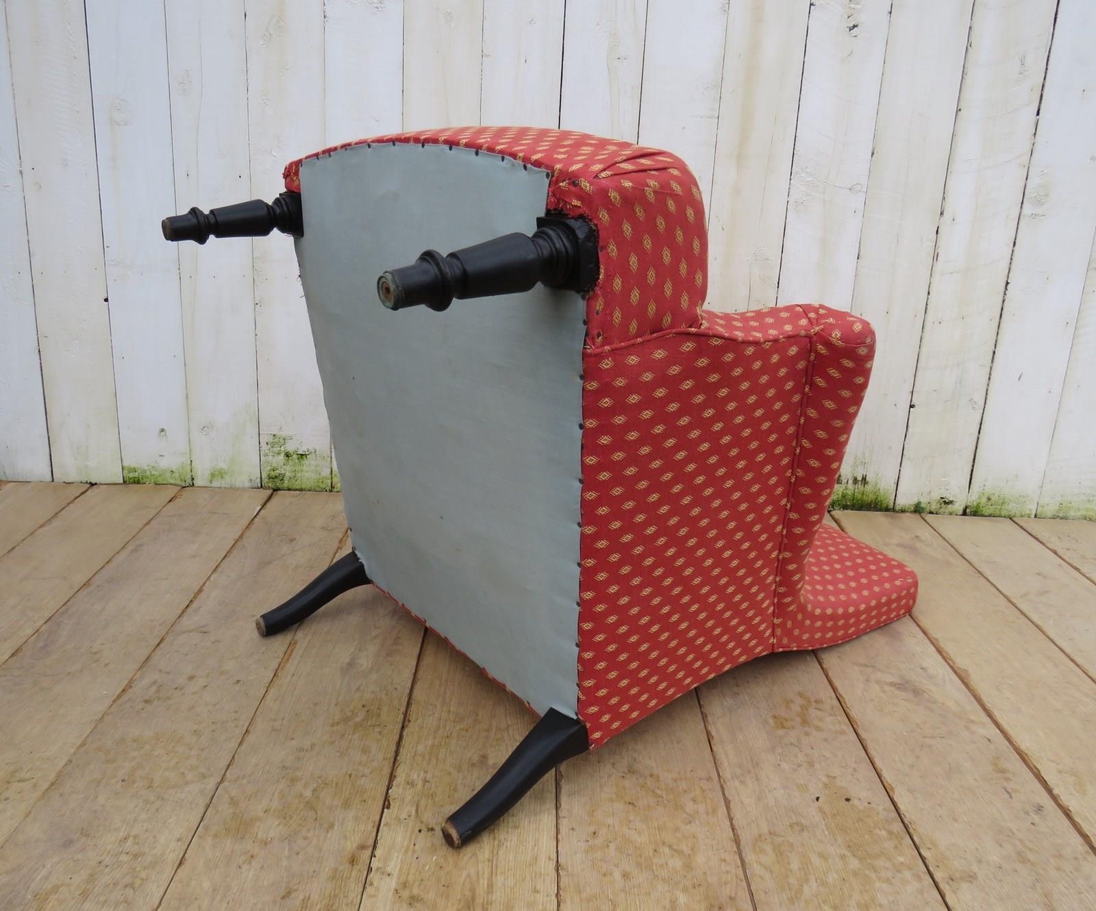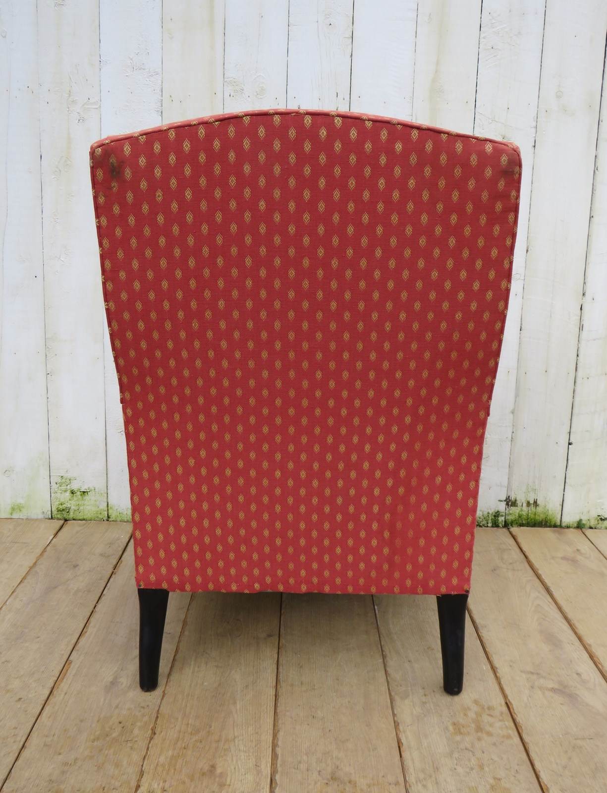 Shapely, sound, sturdy and sprung 19th century French high back Napoleon III armchair on ebonized legs for re-upholstery or used as is with a clean. Seat height 42 cm & seat depth 54 cm.