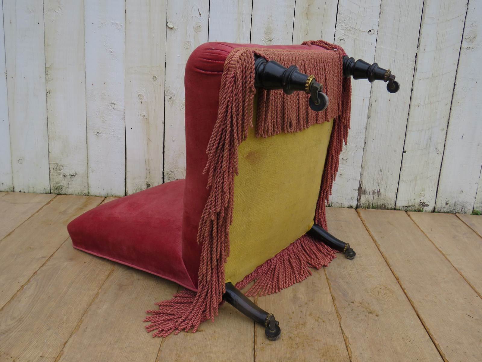 Shapely, sound, sturdy and sprung 19th century French Napoleon III chauffeuse, fireside, nursing, slipper chair on ebonised legs and castors for re-upholstery. Seat height 34cm & seat depth 46cm.