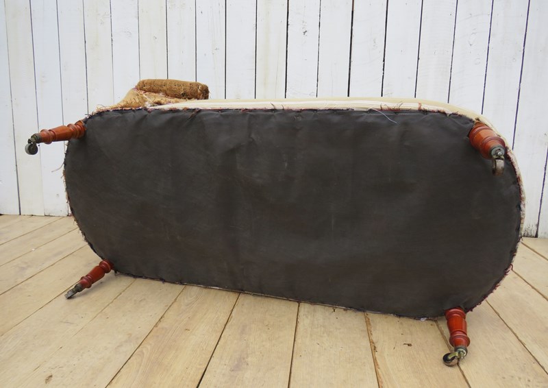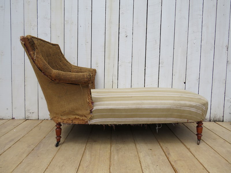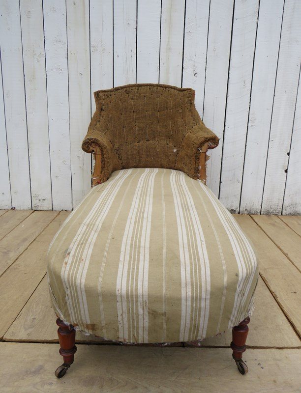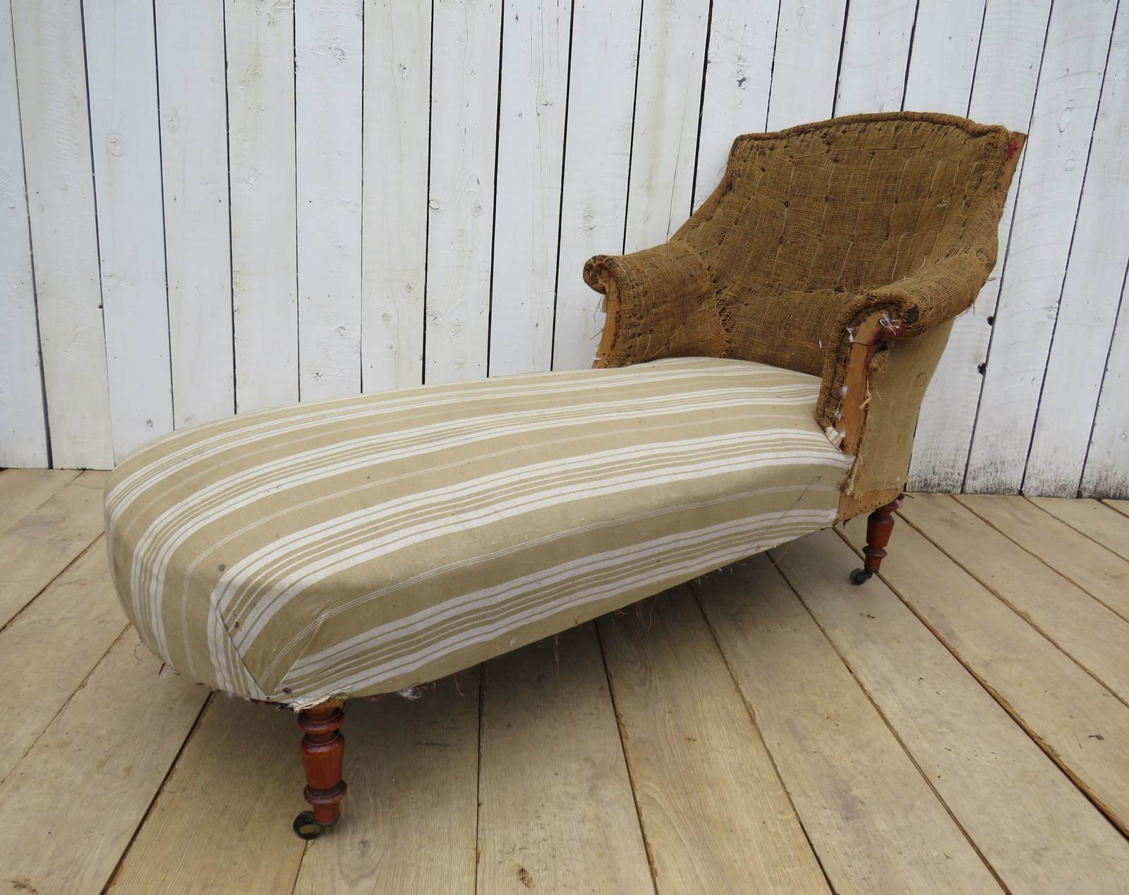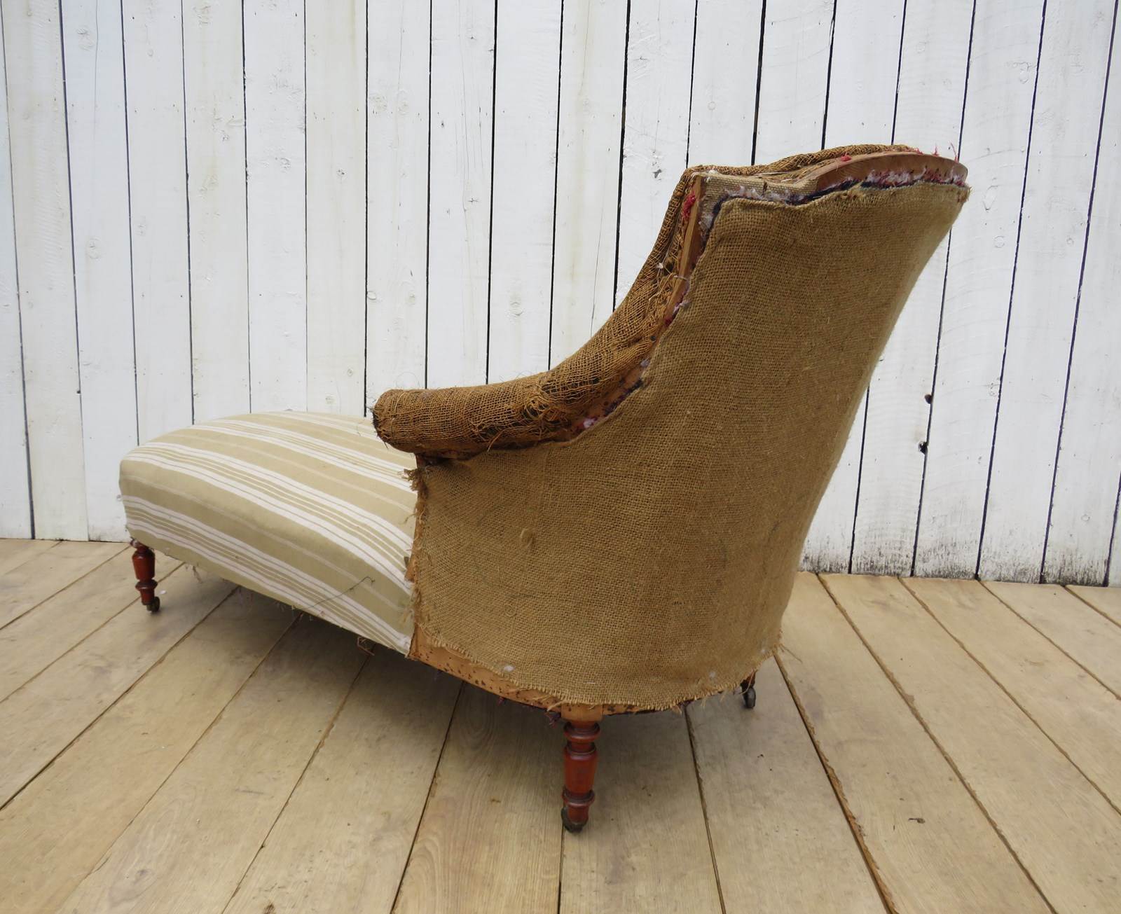 Shapely, sound, sturdy and sprung 19th century French deconstructed Napoleon III day bed, chaise longue on hard wood legs and castors for re-upholstery. Seat height 41cm & seat depth 132cm.