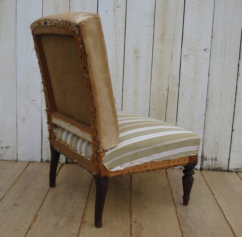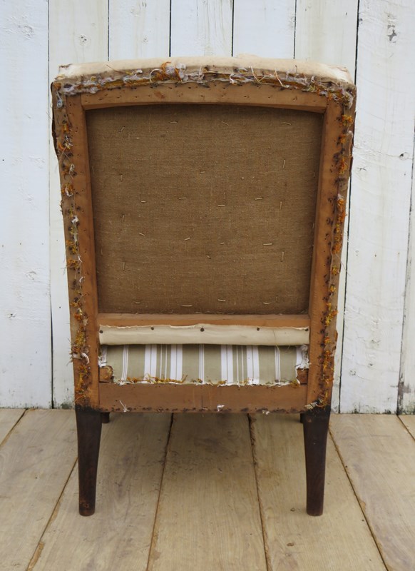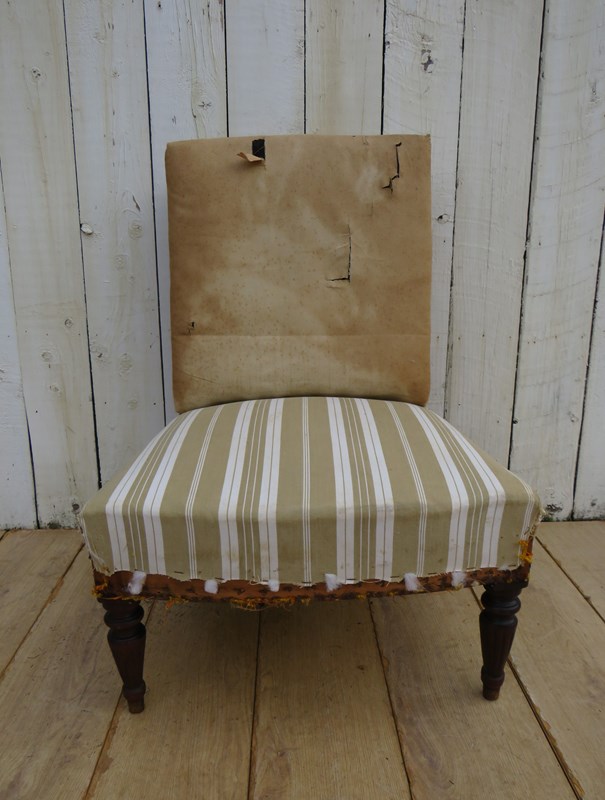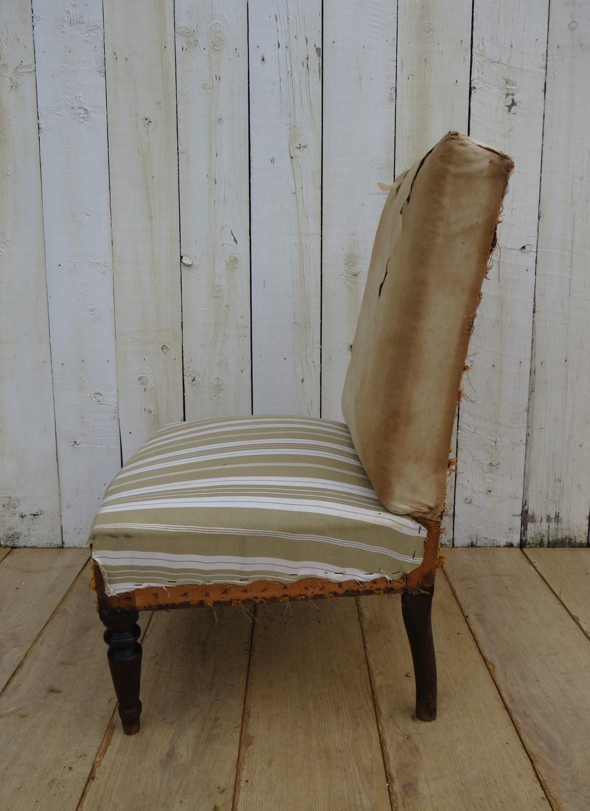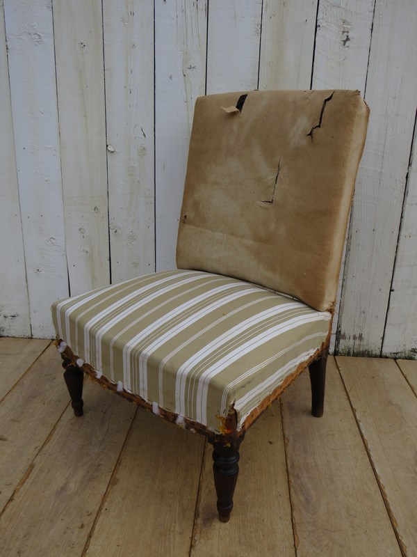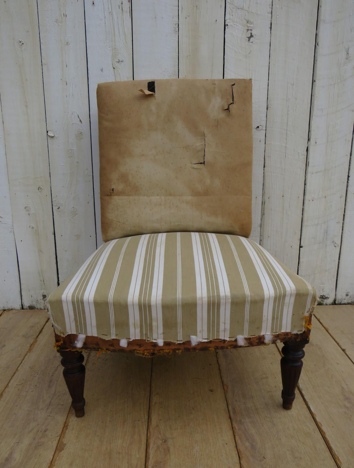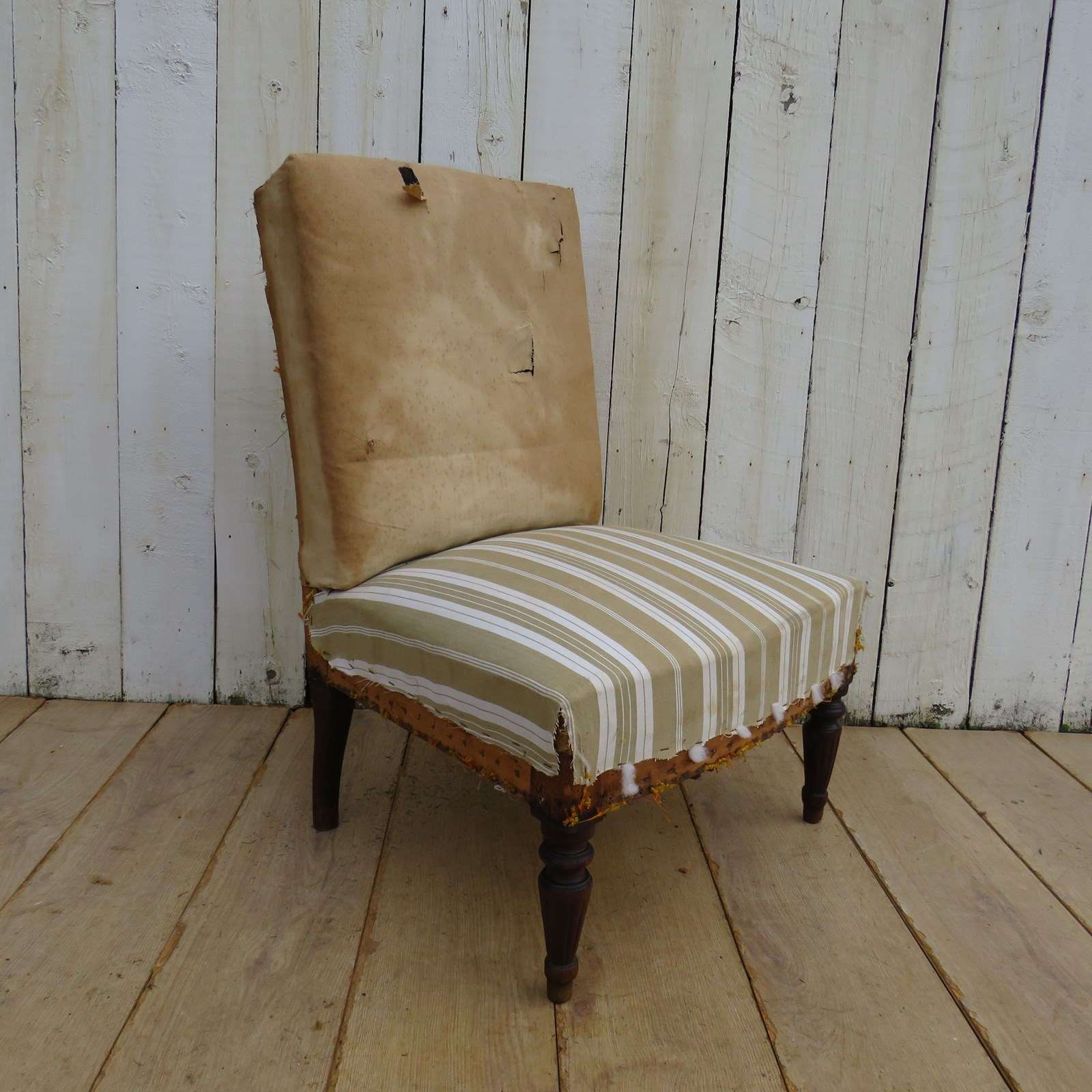 Shapely, sound and sturdy 19th century French Napoleon III chauffeuse slipper, nursing chair for re-upholstery. Seat height 37cm & seat depth 38cm.