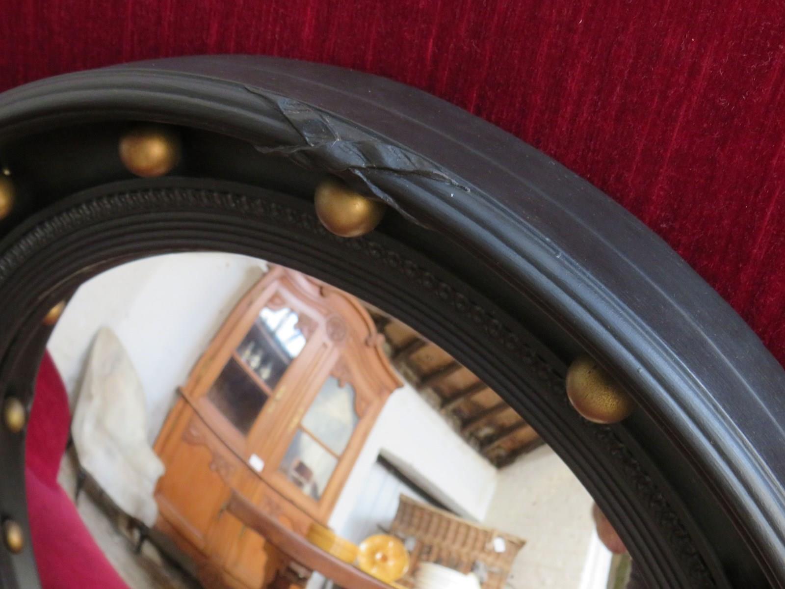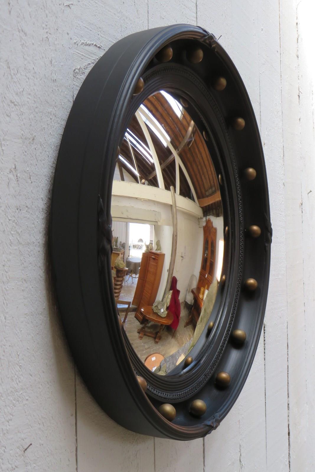 Mid 20th century English decorative butlers porthole fish eye convex wall mirror ready to hang.