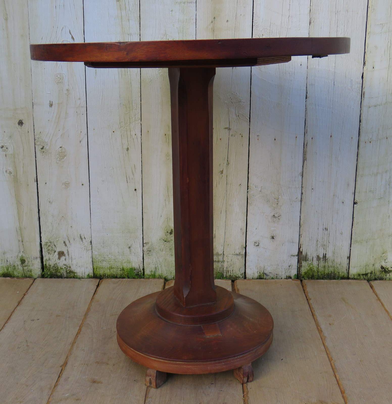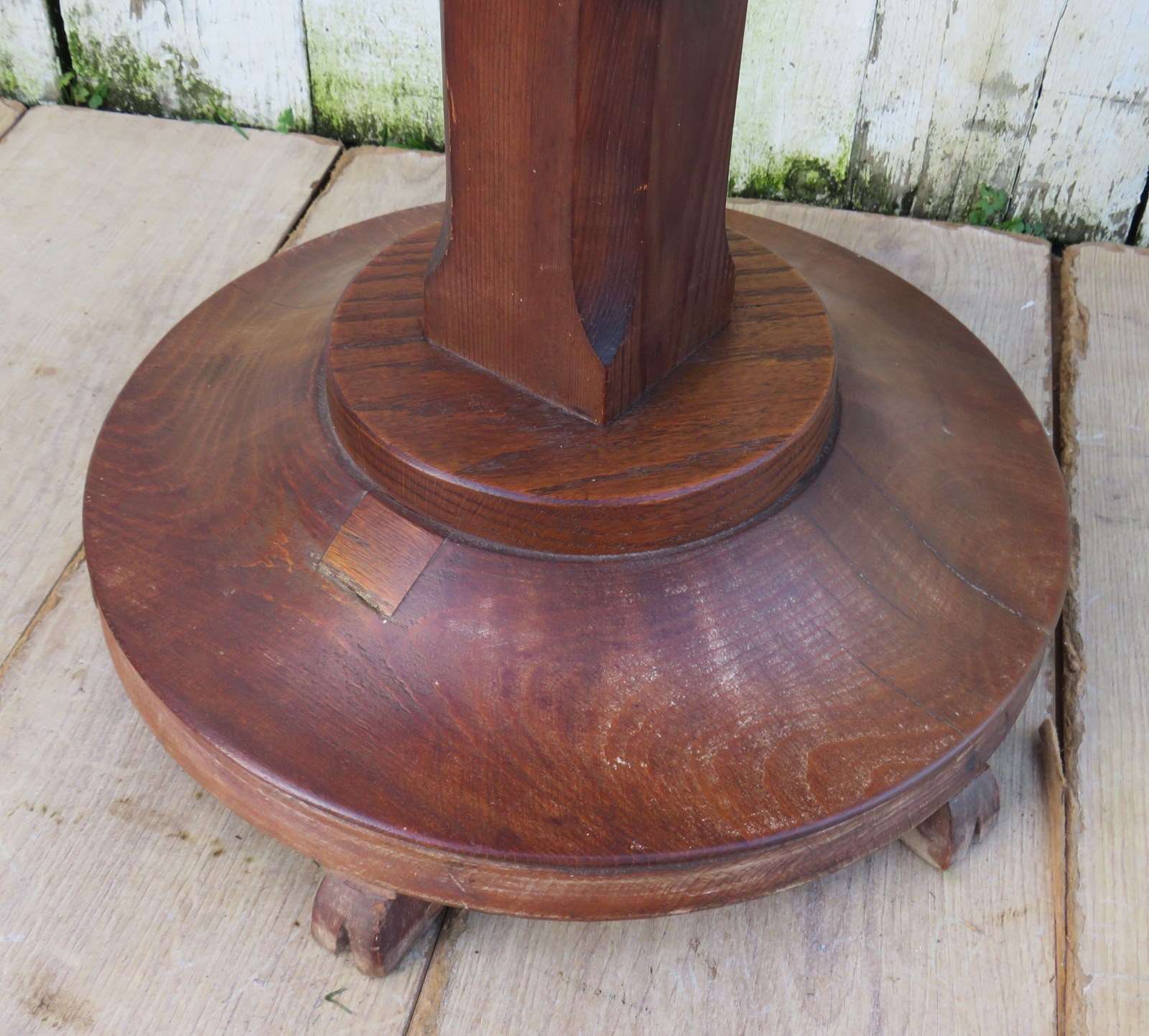 Shapely sound and sturdy mid 20th century English oak lamp. occasional, wine, side table.