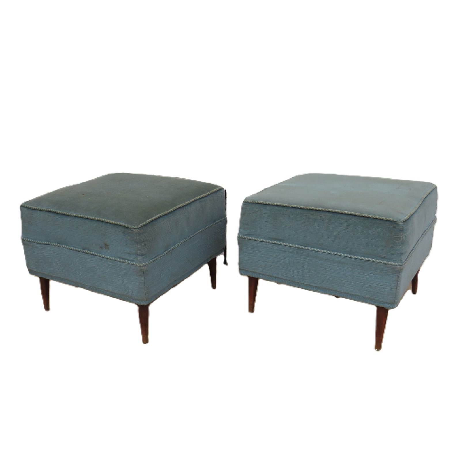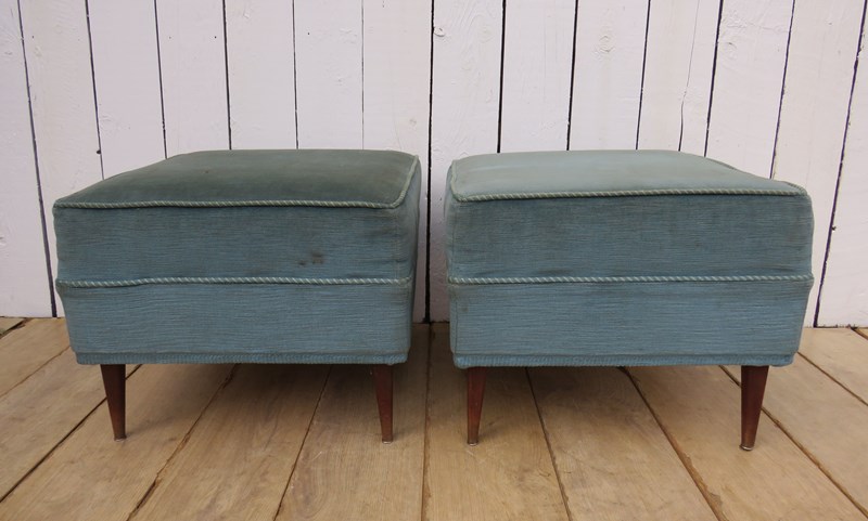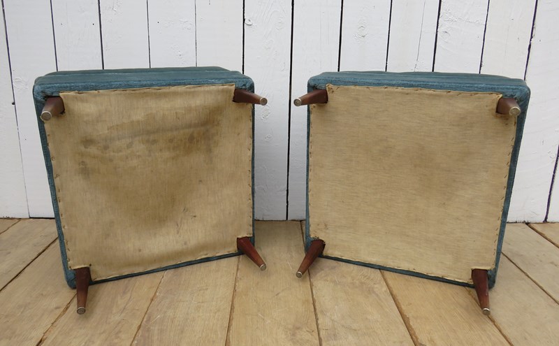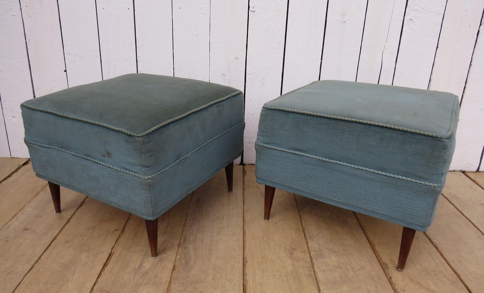 Shapely pair of sound, sturdy and sprung mid 20th century French foot stools for re-upholstery.