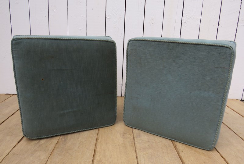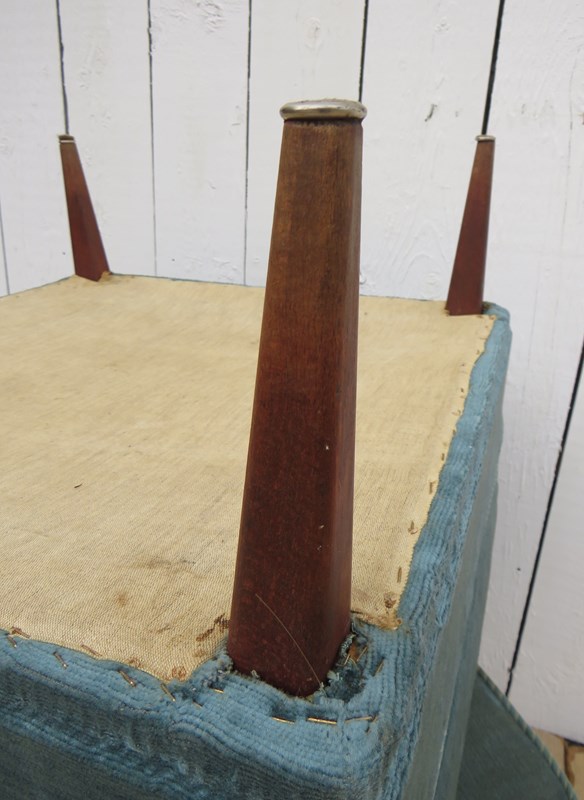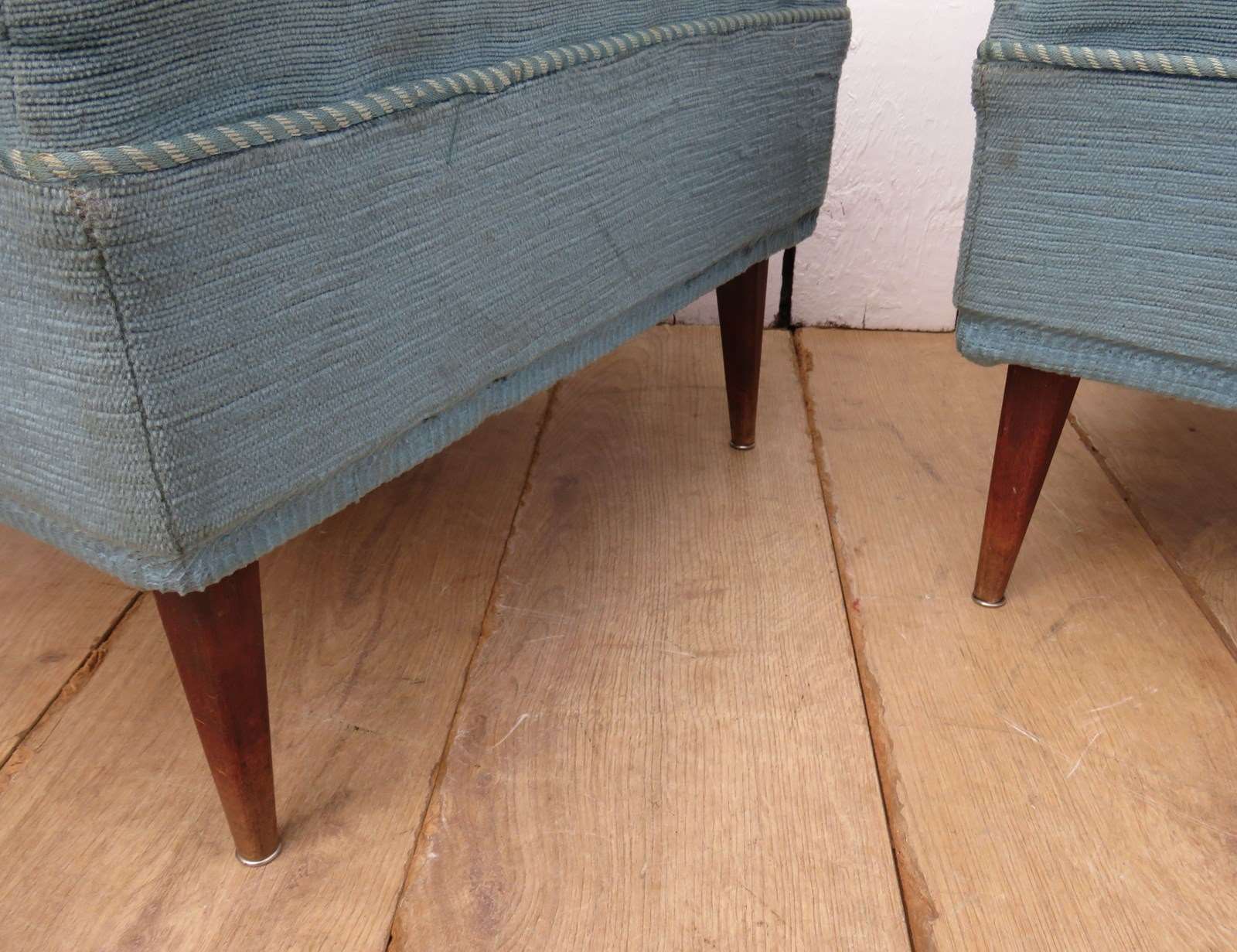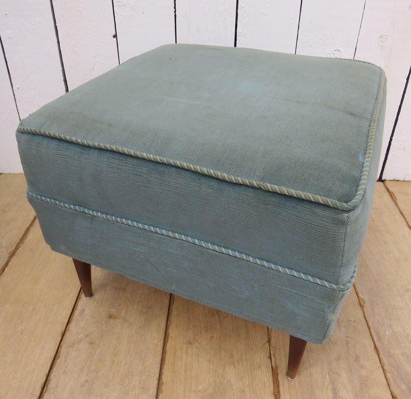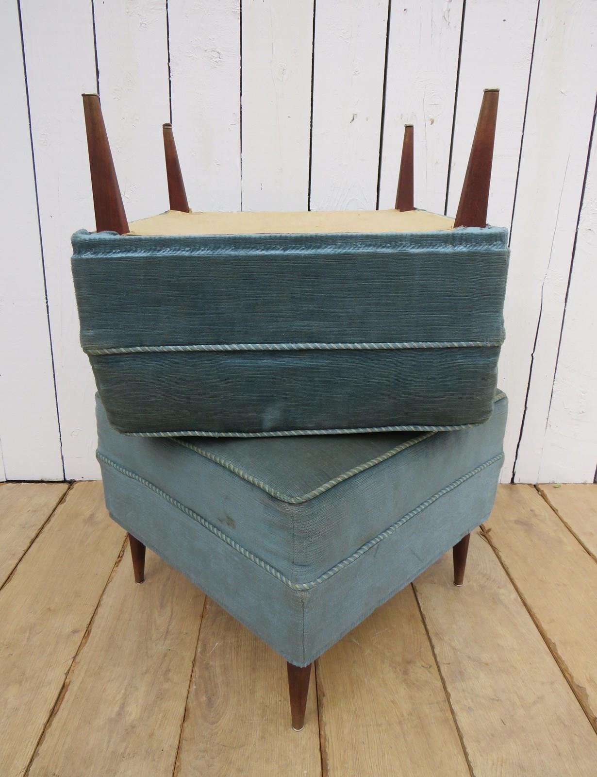 Shapely pair of sound, sturdy and sprung mid 20th century French foot stools for re-upholstery.