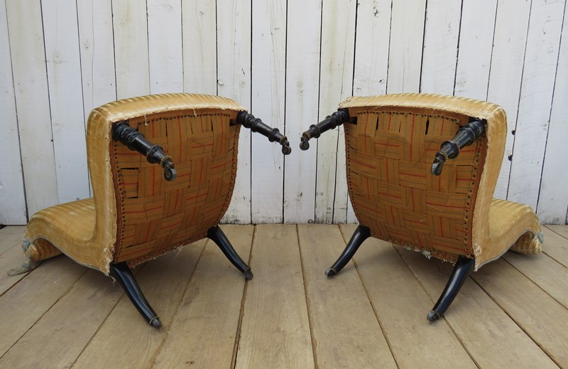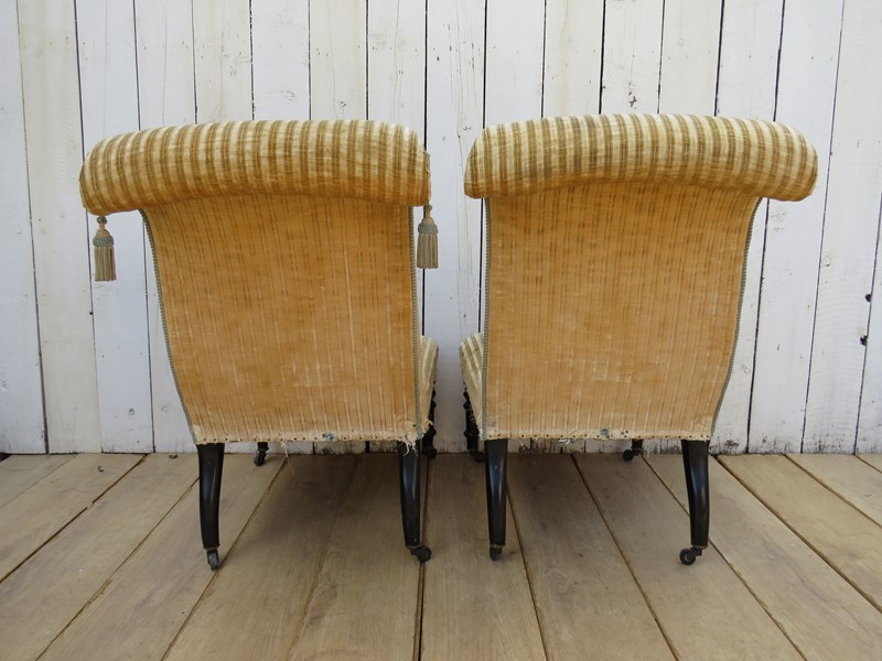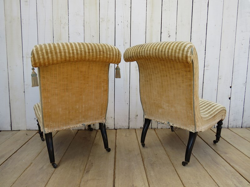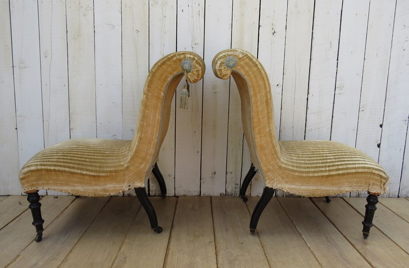 Pair Of Napoleon III Scroll Top Slipper Chairs