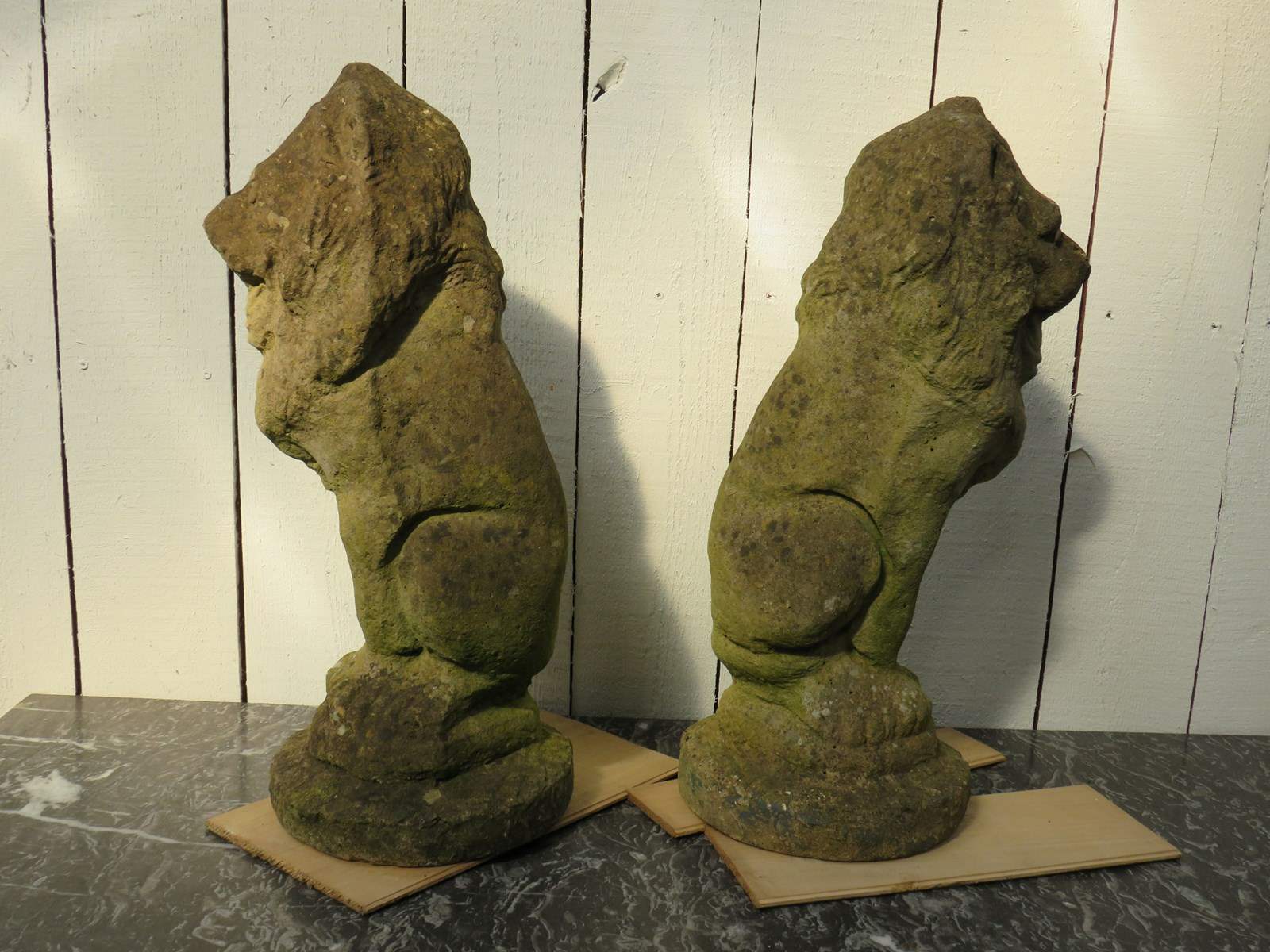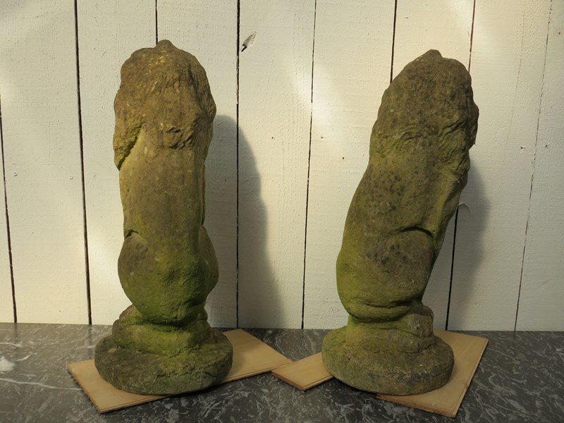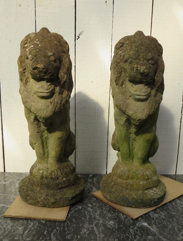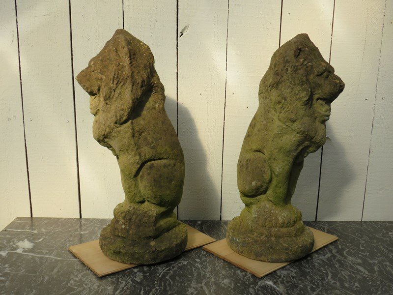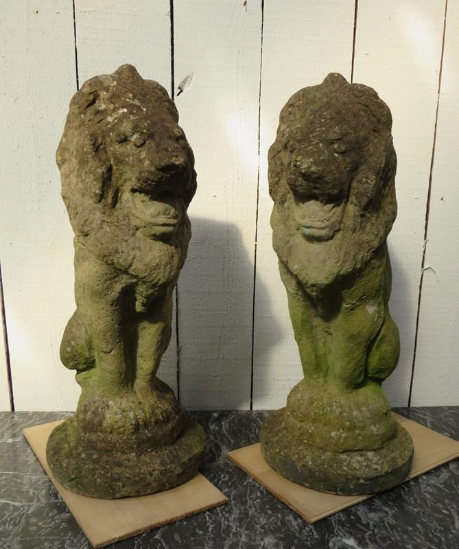 Pair Of Weathered Garden Lion Ornaments