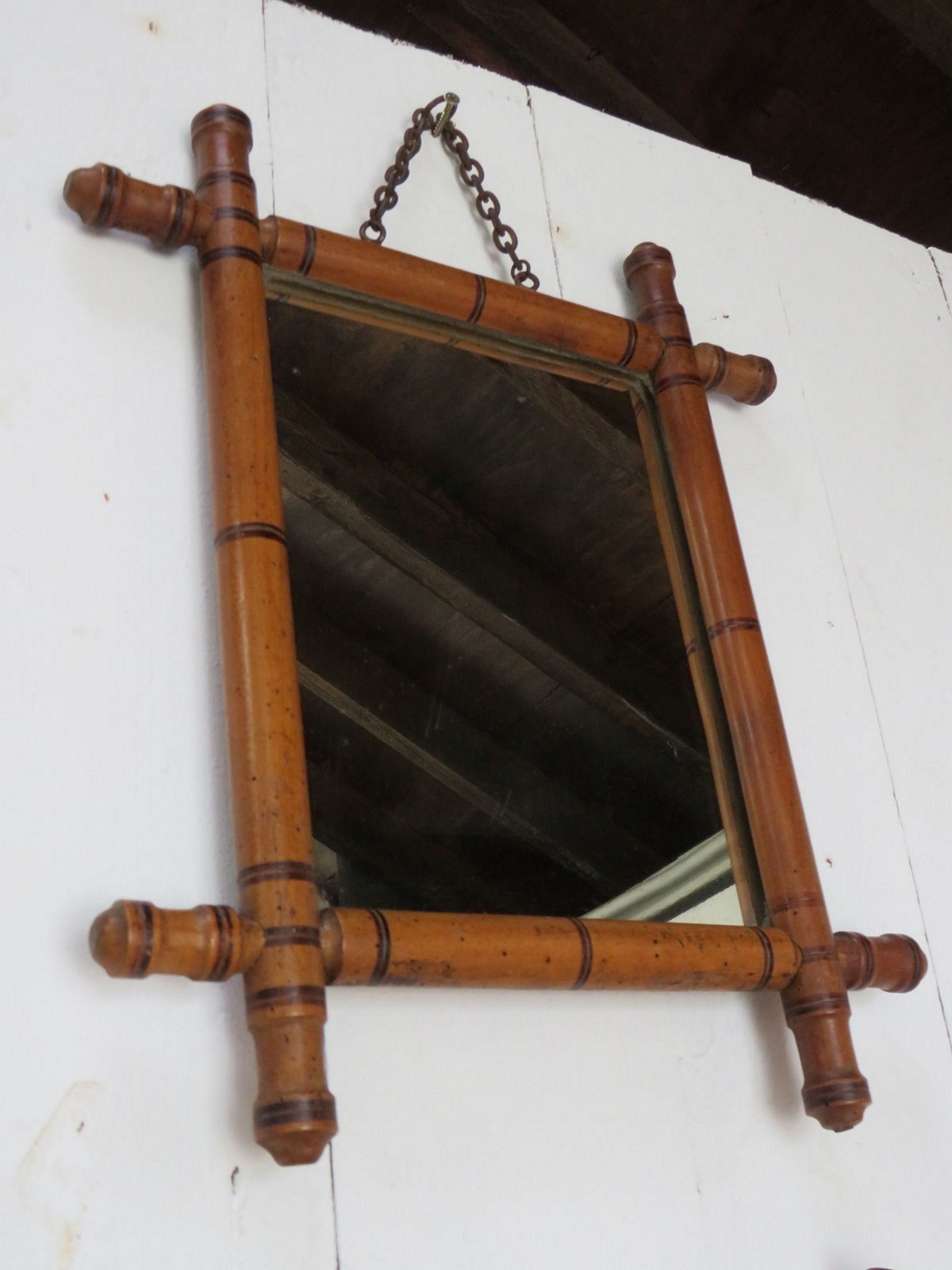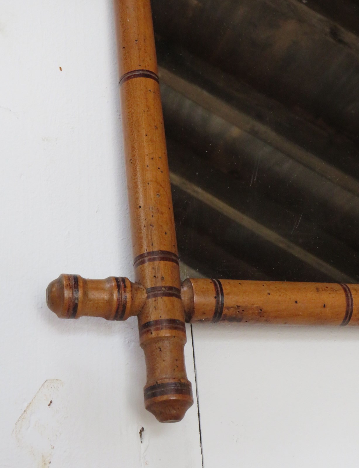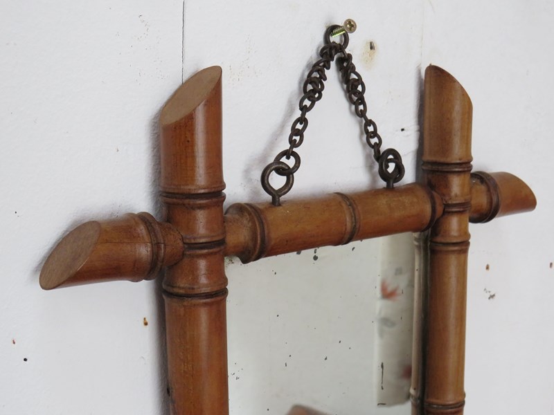 Set of nine late 19th century, early 20th century French decorative faux bamboo wall mirrors with some historical worm holes and foxing to the original glass plates, ready to hang. Various sizes.