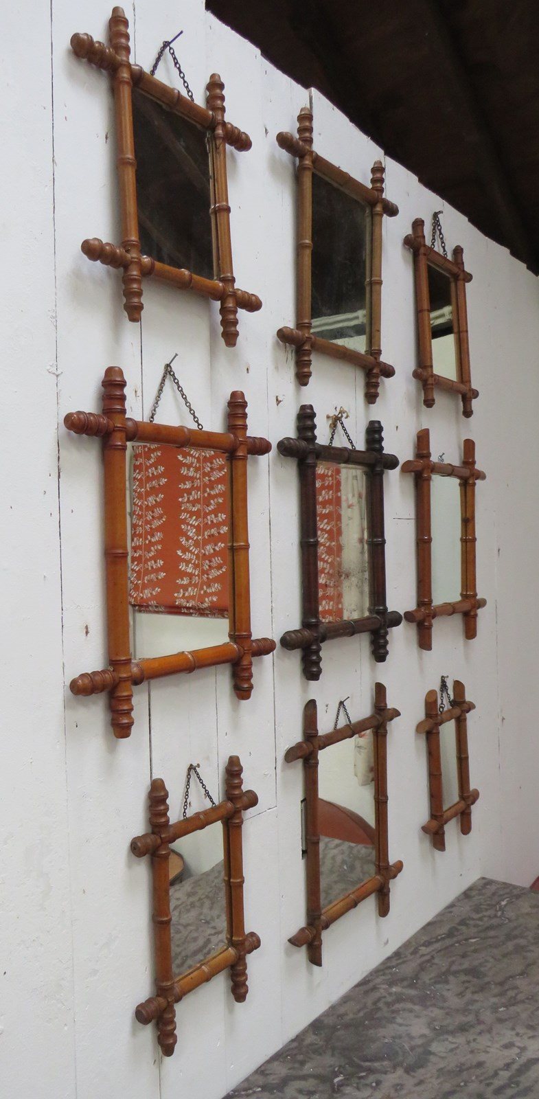 Set Of Nine Faux Bamboo Mirrors
