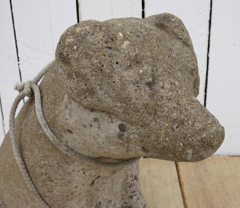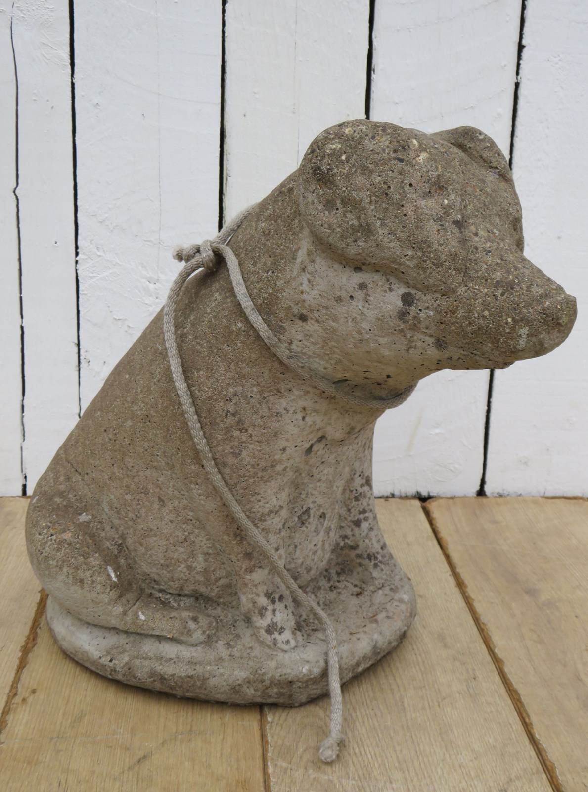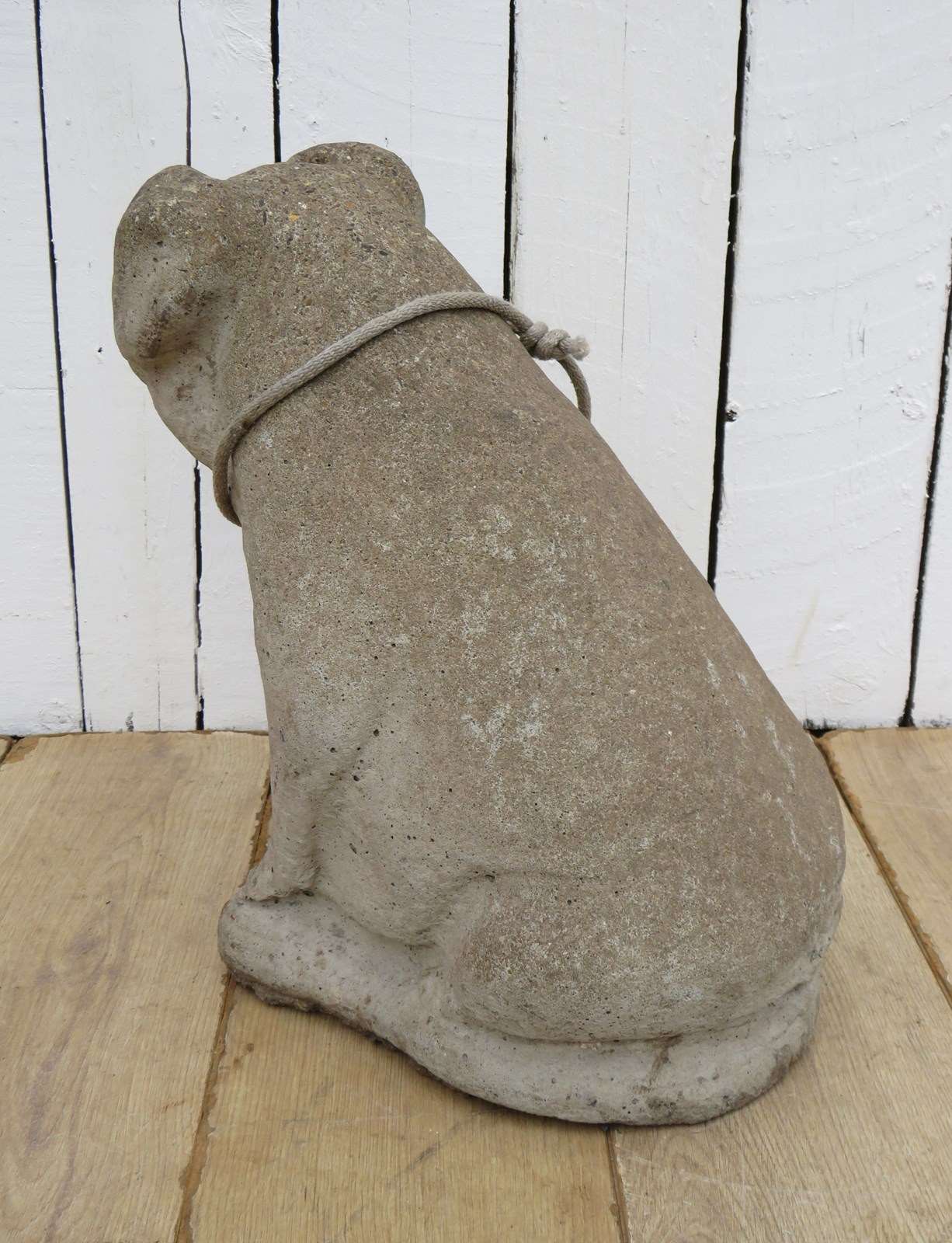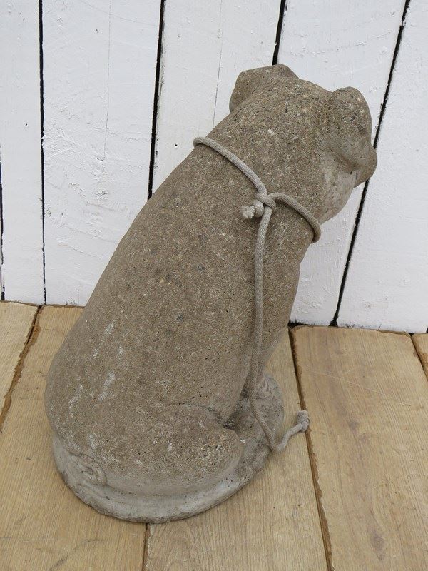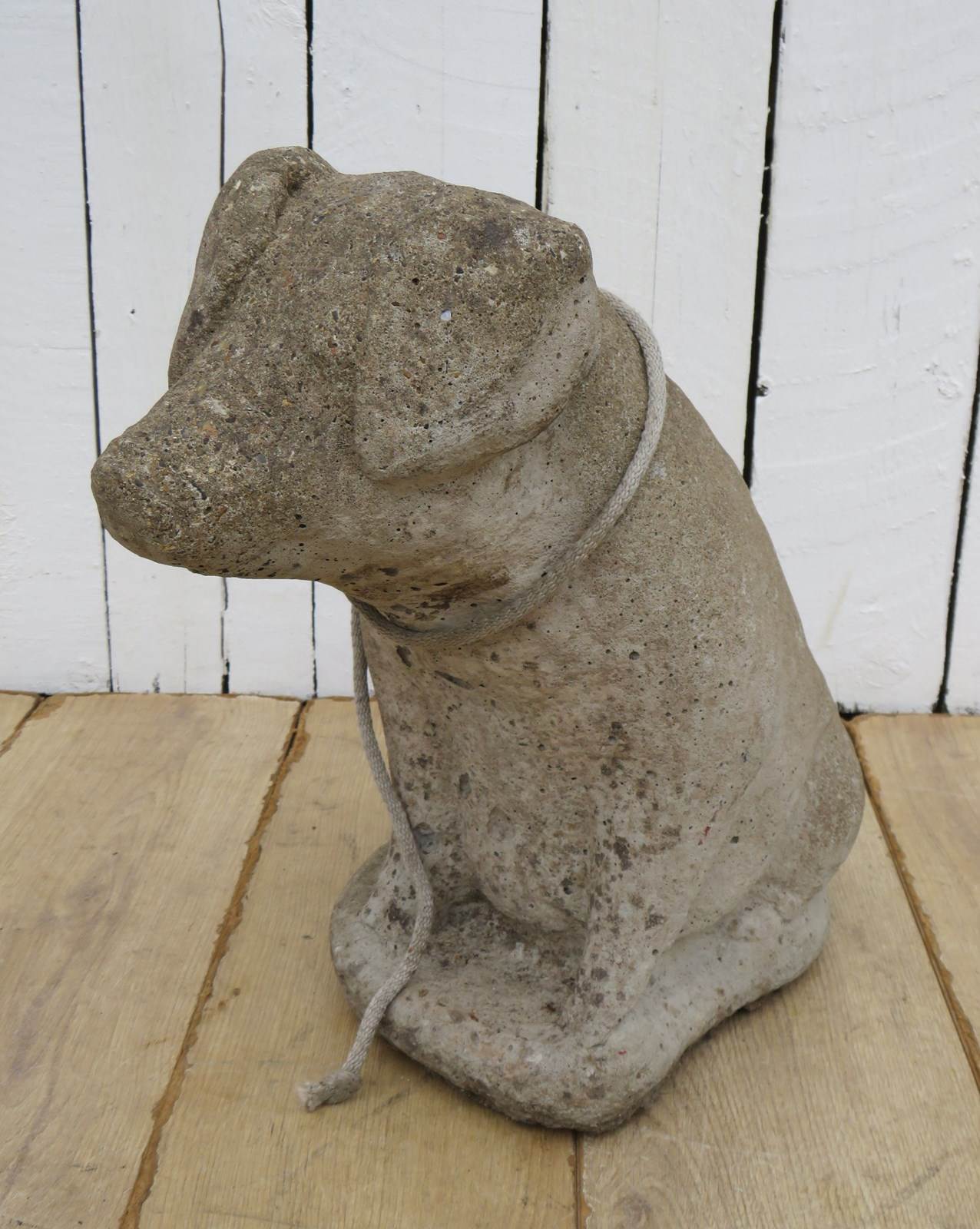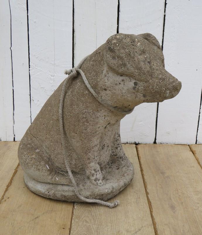 Large and heavy vintage English decorative statuary reconstituted stone weathered garden pig ornament.
