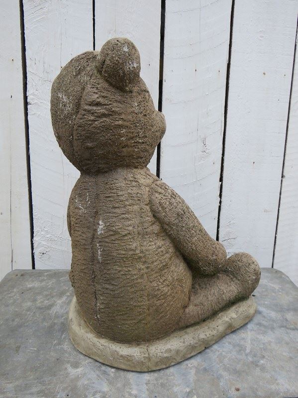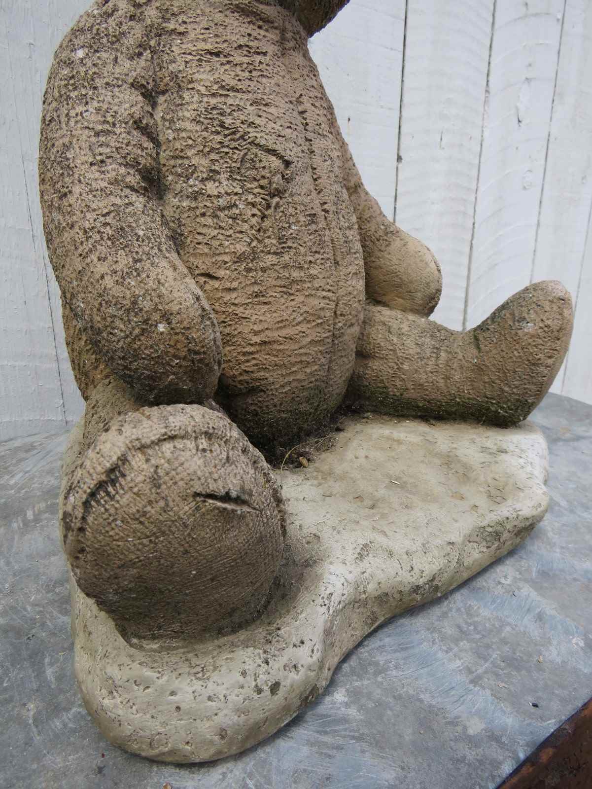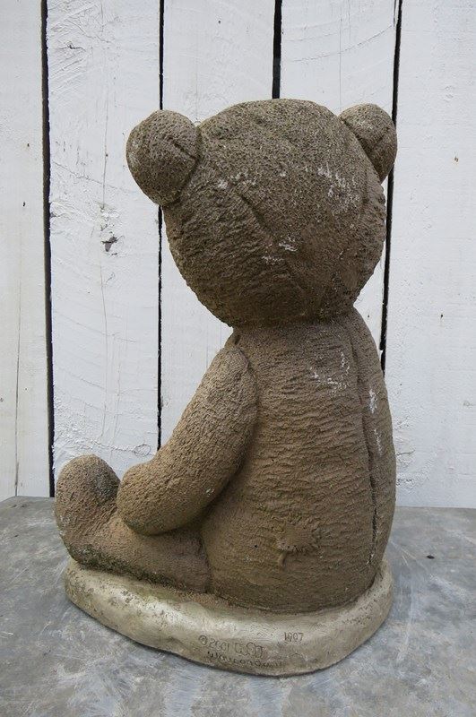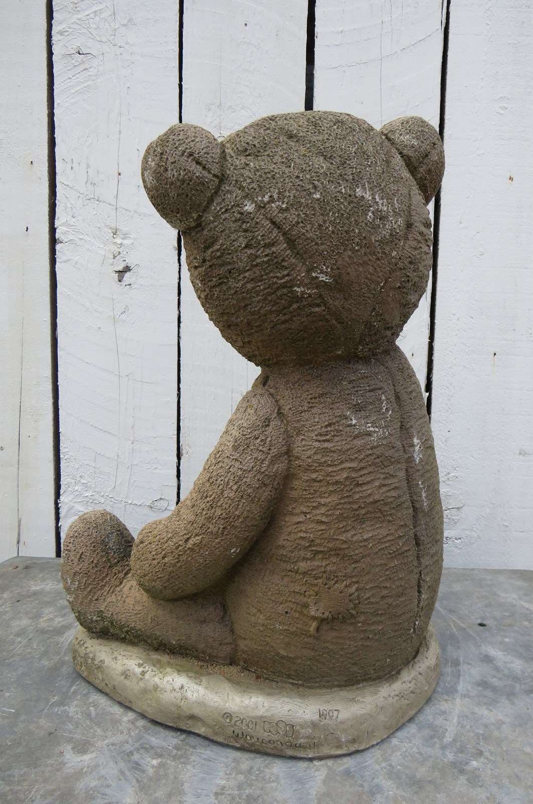 Large and heavy vintage English decorative reconstituted stone statuary weathered garden teddy ornament.