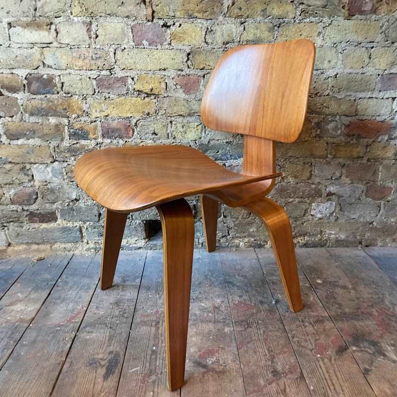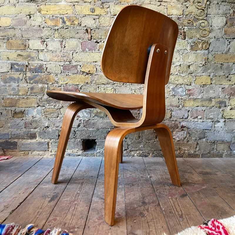 Pair of early edition Charles & Ray Eames for Herman Miller DCW dining chairs. The DCW chair was initially released in 1946, with Herman Miller taking over the manufacture of the chairs in 1950-53 when they were removed from production until 1994. They can therefore be reliably dated to to the early Fifties period as identified by the 5-2-4 screw pattern on the base and the rounded feet.