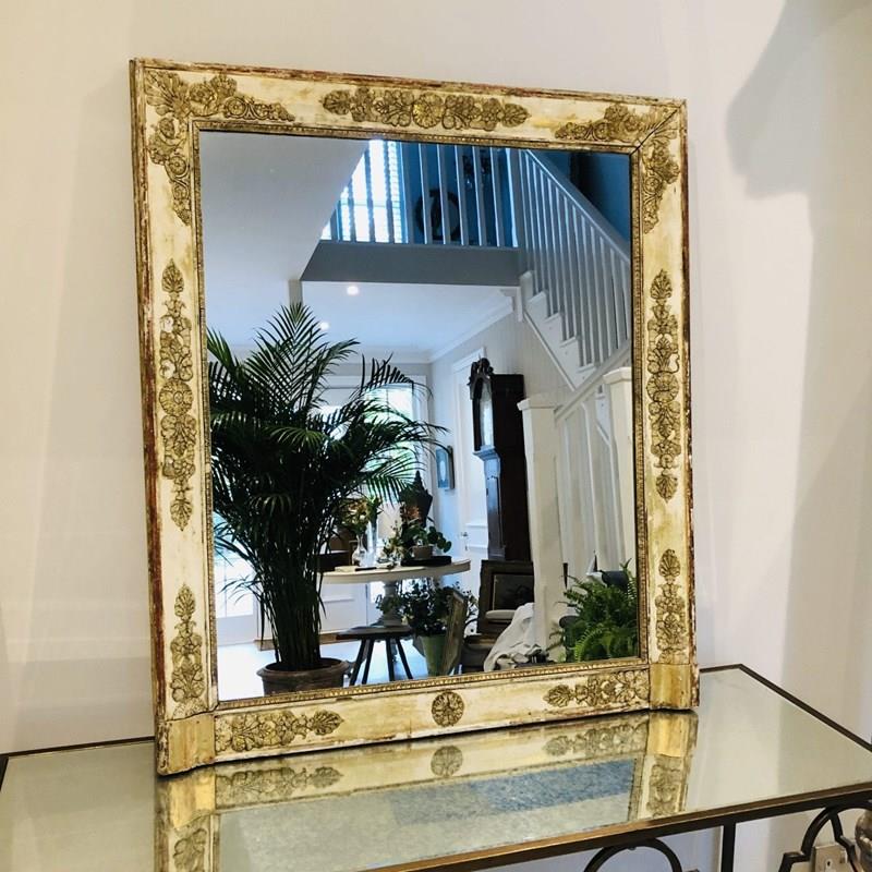 Beautiful ornate detail on this early 19th century gilt wood and cream mirror. Small pieces of the moulding are missing, as per the images, but this does not detract from the overall beauty of this piece. A truly stunning mirror.