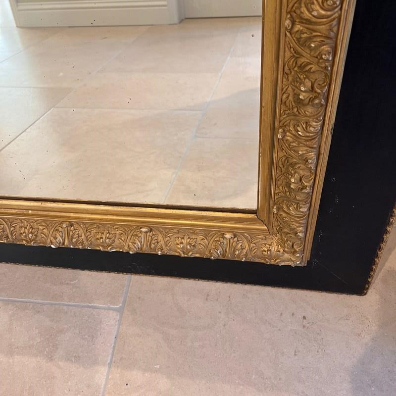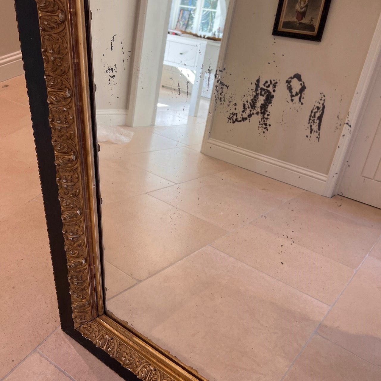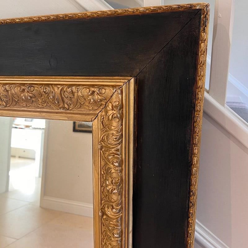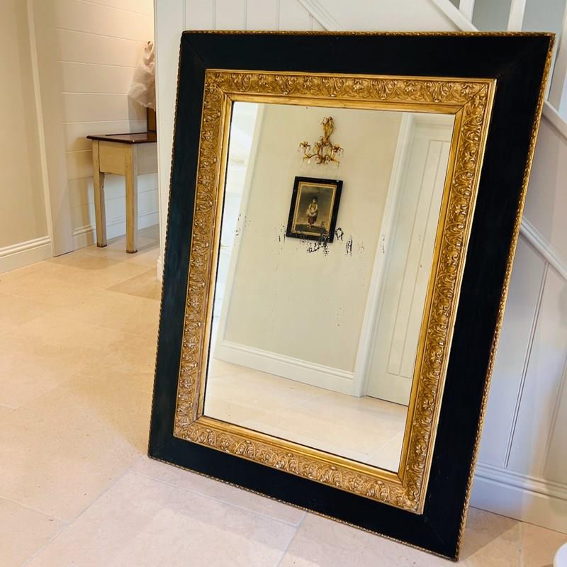 A truly unique Large French Mirror which is the centrepiece for any space. The carved detail is wonderful and is complemented by the painted brown/black detail. The mirror was sourced in Menerbes in France and originates from a prominent village manor house.