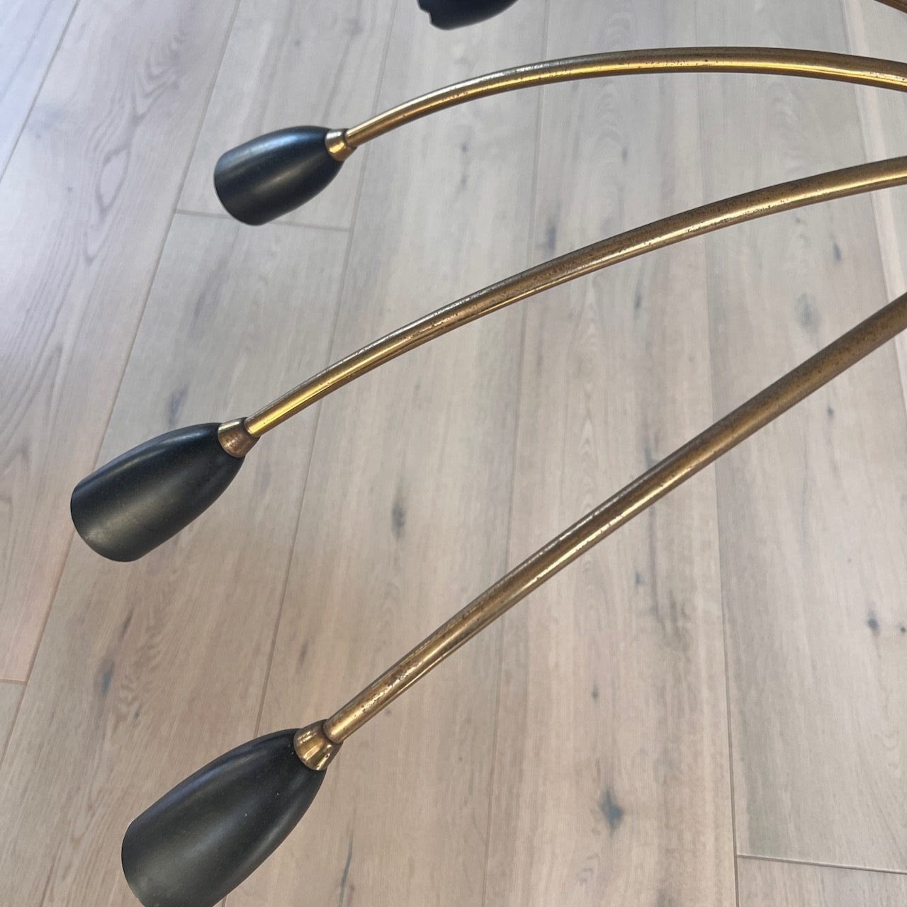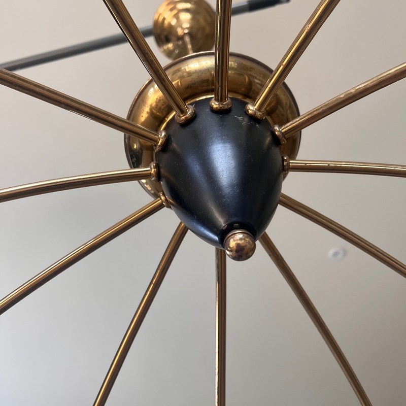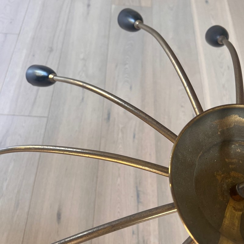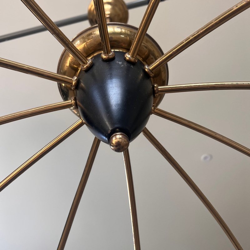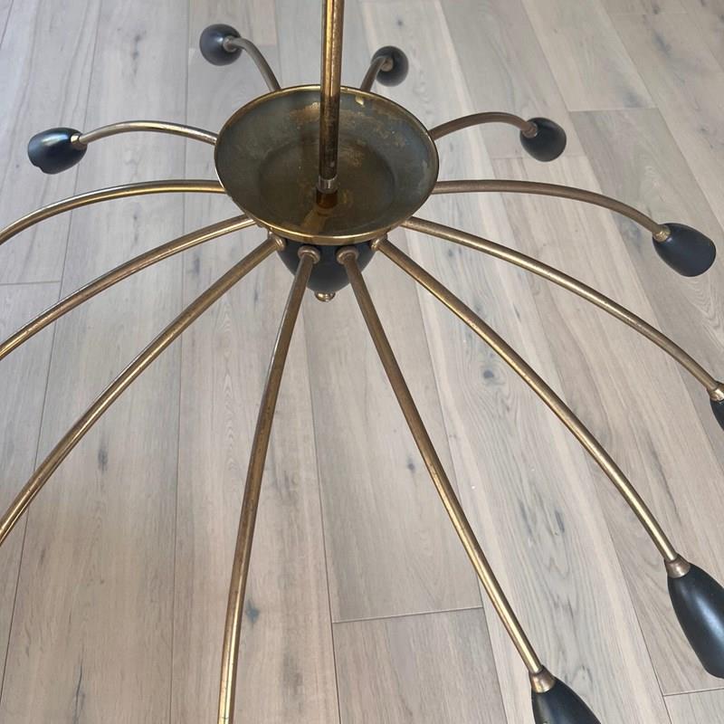 Stunning 1950’s Sputnick Chandelier with Brass frame and black details. The light is in excellent condition apart from a very small nick in one of the black bulb sleeves, you can see this in one of the images. Happy to send further images if required, the price reflects this small flaw.