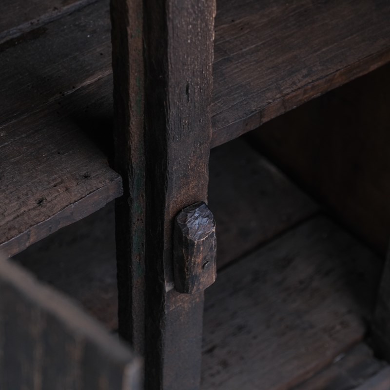 It has likely been forms from antique wood and parts into a beautiful petite primitive cabinet.