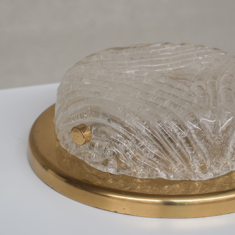 German Mid-Century Ceiling Or Wall Frosted Glass And Brass Light Sconce