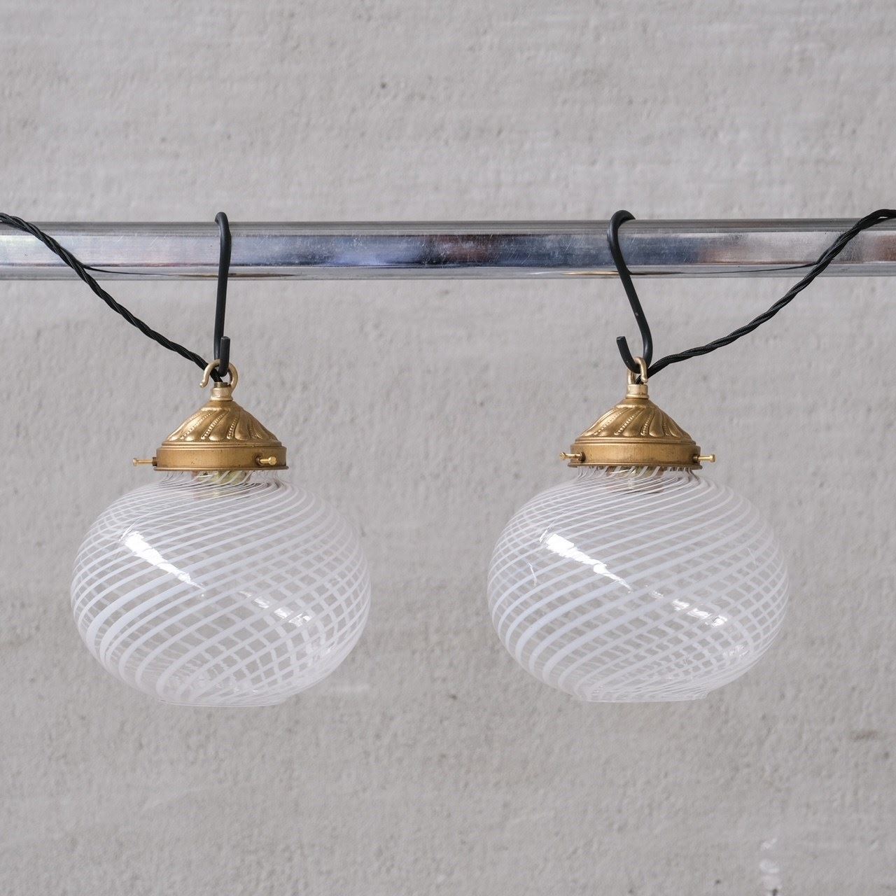 Glass And Brass Mid-Century Italian Pendant Lights (3 Available)