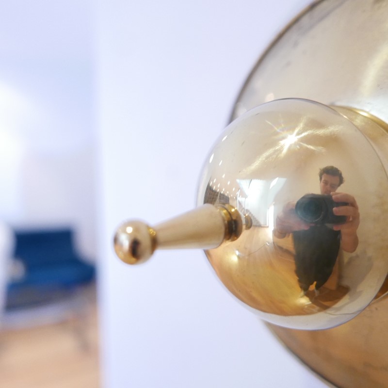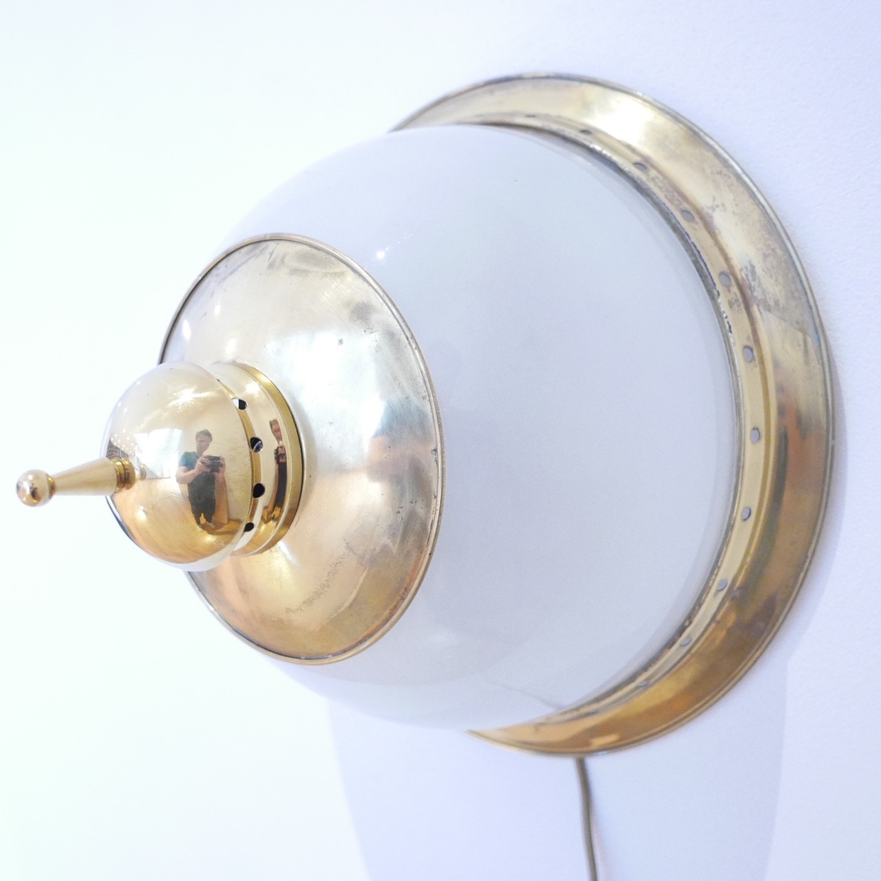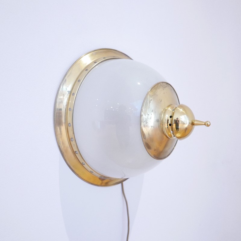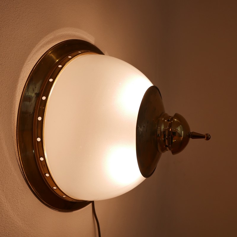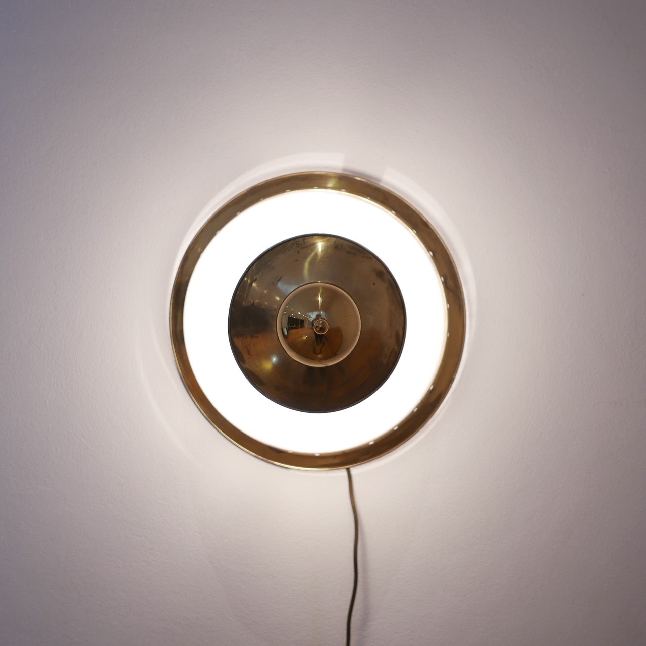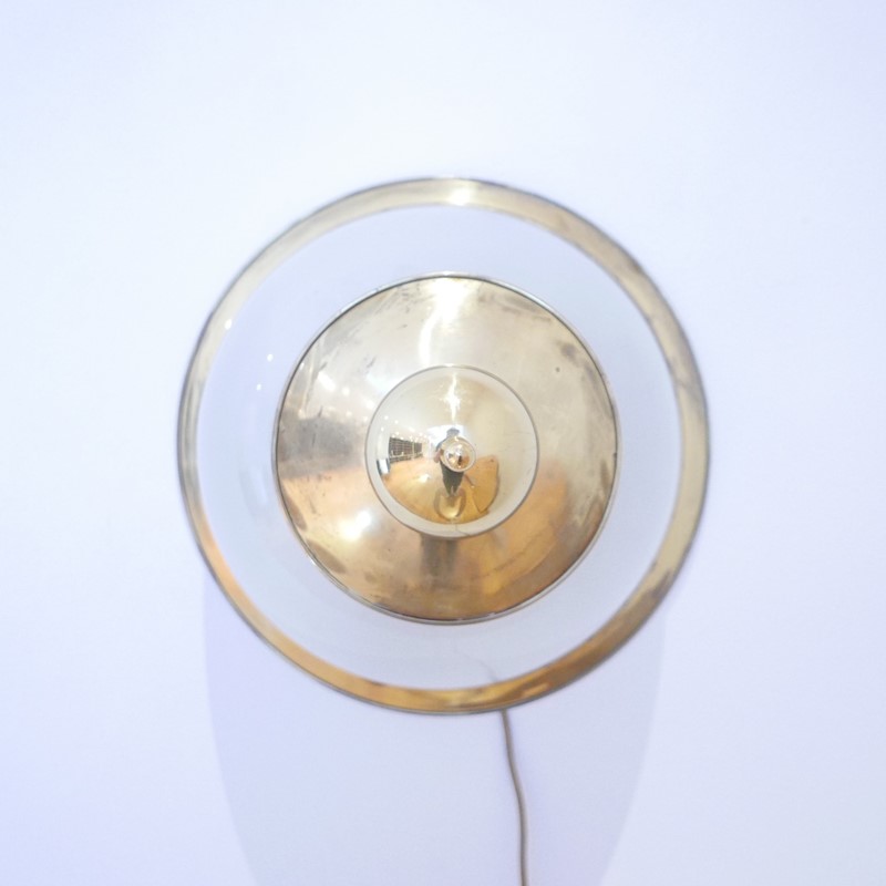 A rare wall or ceiling light attributed to renowned designer, the Italian Luigi Caccia Dominioni. c1960s, Italian, likely by Azucena. Re-wired professional and PAT tested. Dimensions: 25 H x 35 Diameter in cm. Collection can be arranged from our Hampton Court Gallery (via appointment).