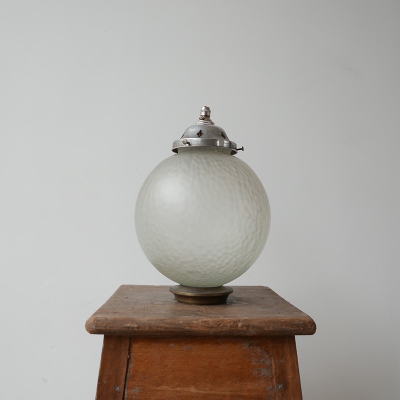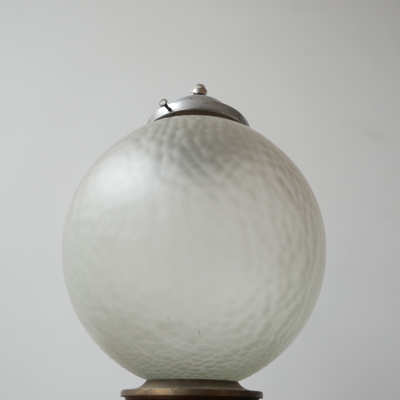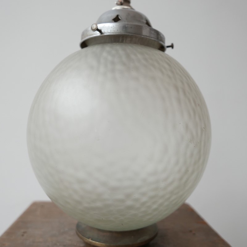 An elegant diffused glass pedant light. Germany, c1950s. Since re-wired with a hook provided. Metal gallery. Good condition. Dimensions: 21 Diameter x 28 H in cm. Delivery: POA Collection or viewing can be arranged at our Hampton Court Gallery via appointment.