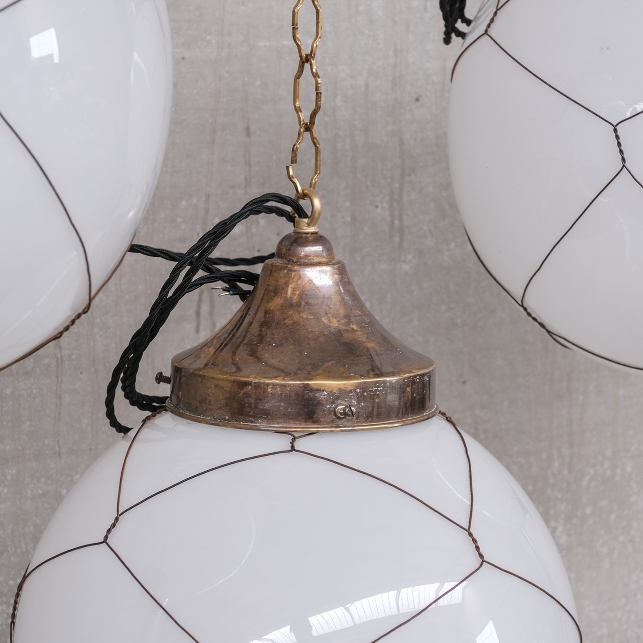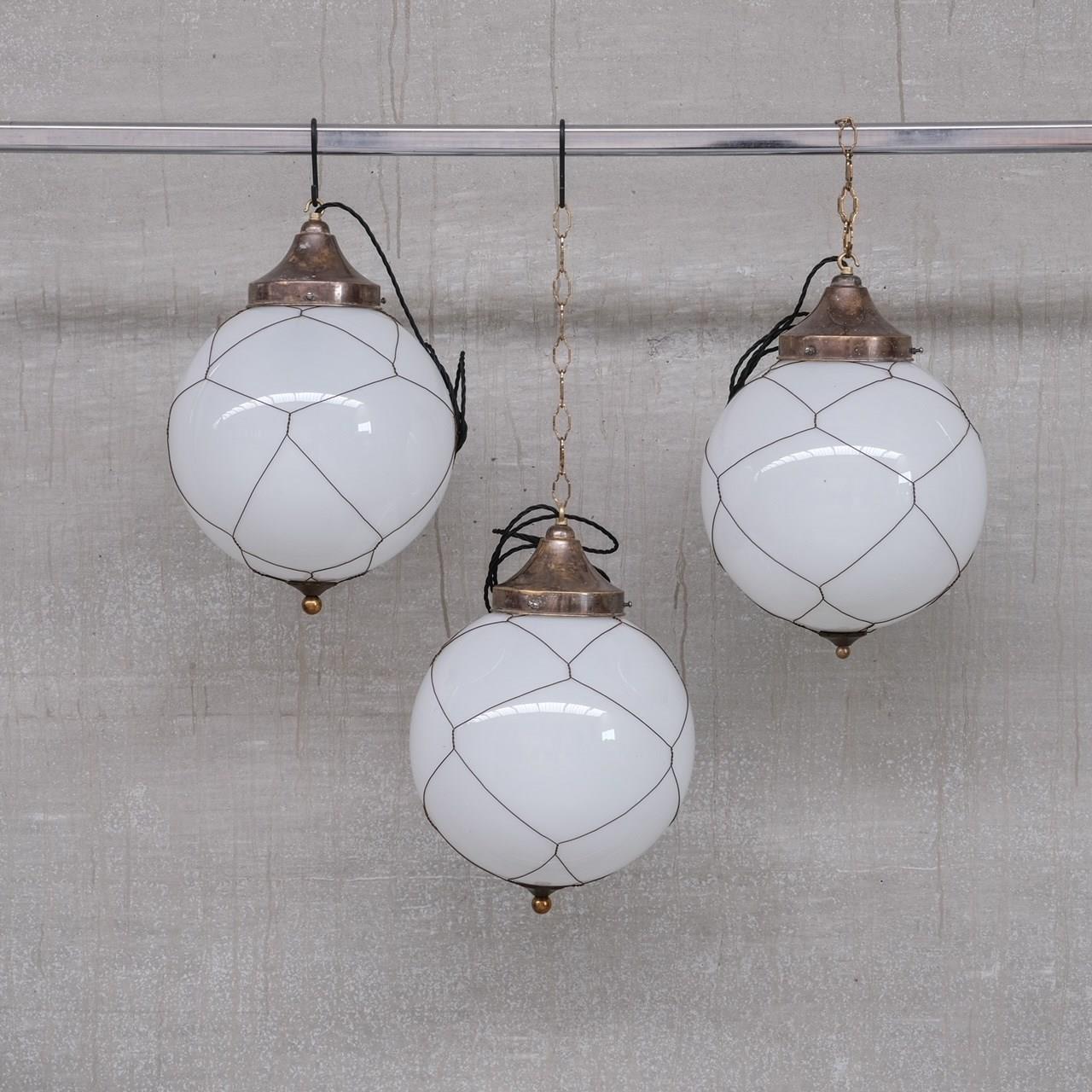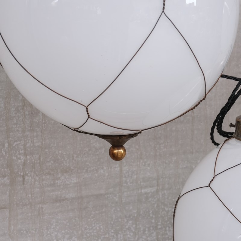 Opaline And Brass Mid-Century Caged Pendants (3)
