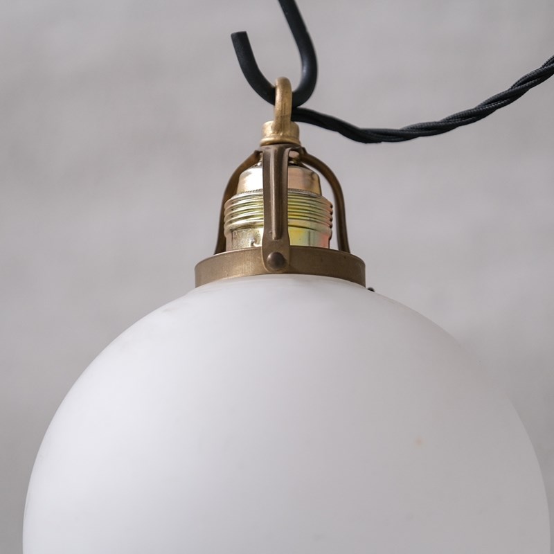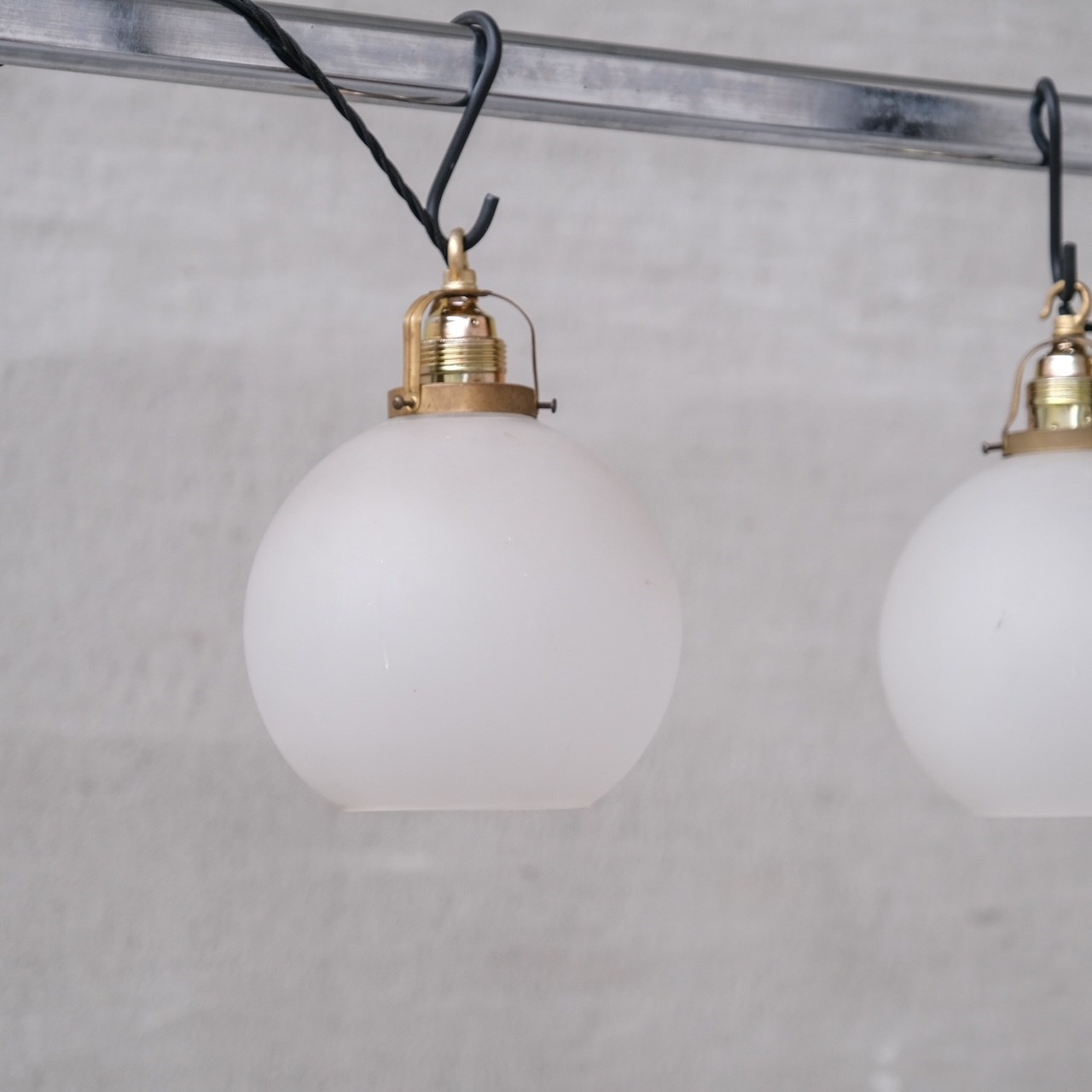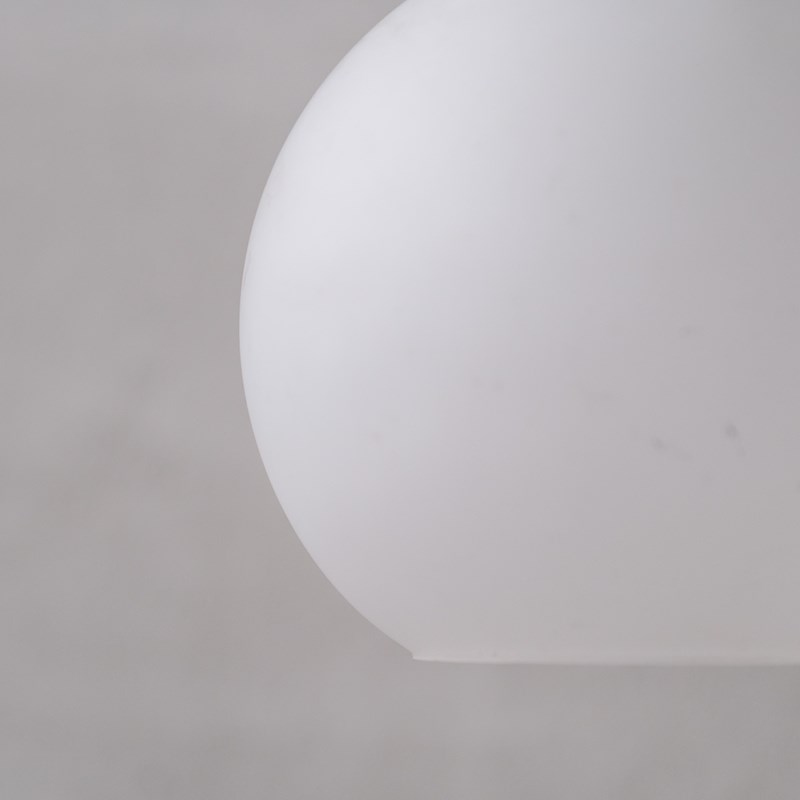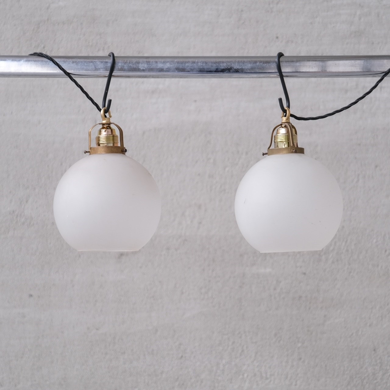 A pair of etched/opaque glass pendant lights.