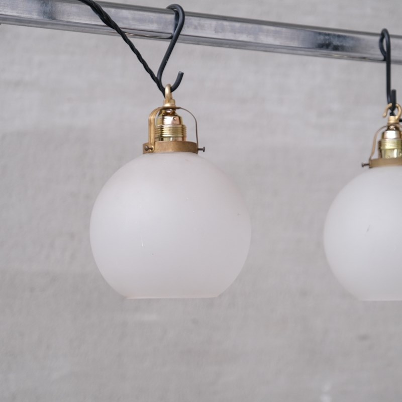 French Etched Mid-Century Glass Pendant Lights