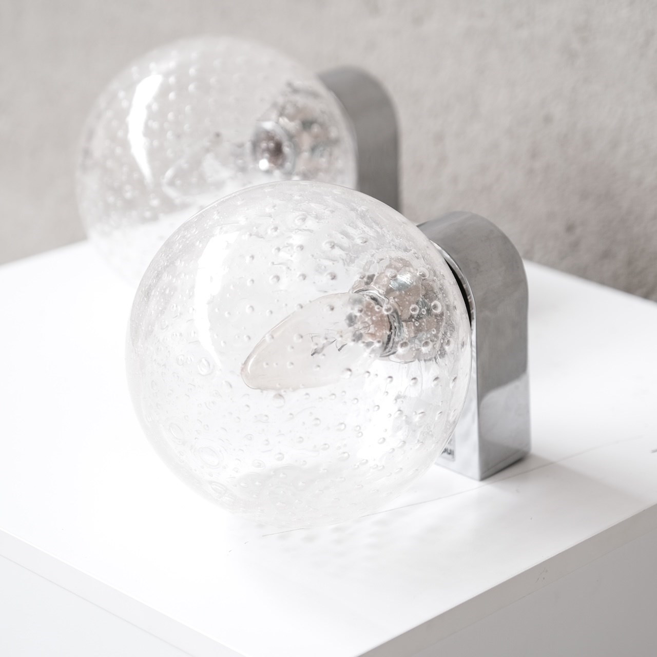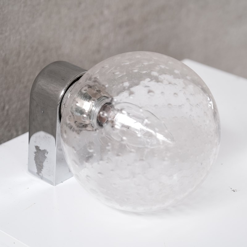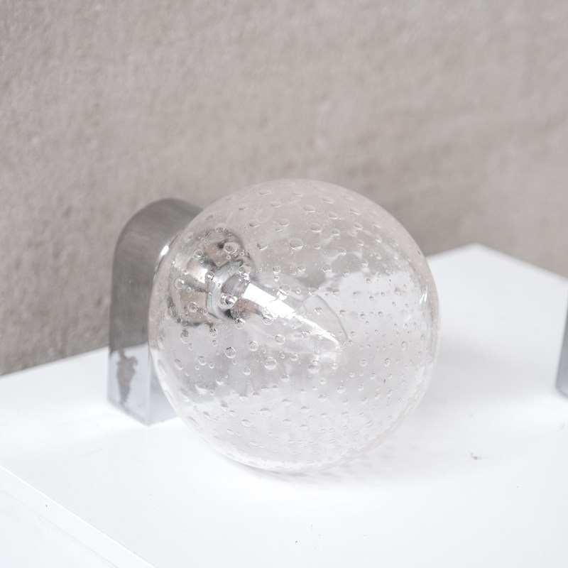 Pair Of Italian Chrome Mid-Century Glass Wall Lights