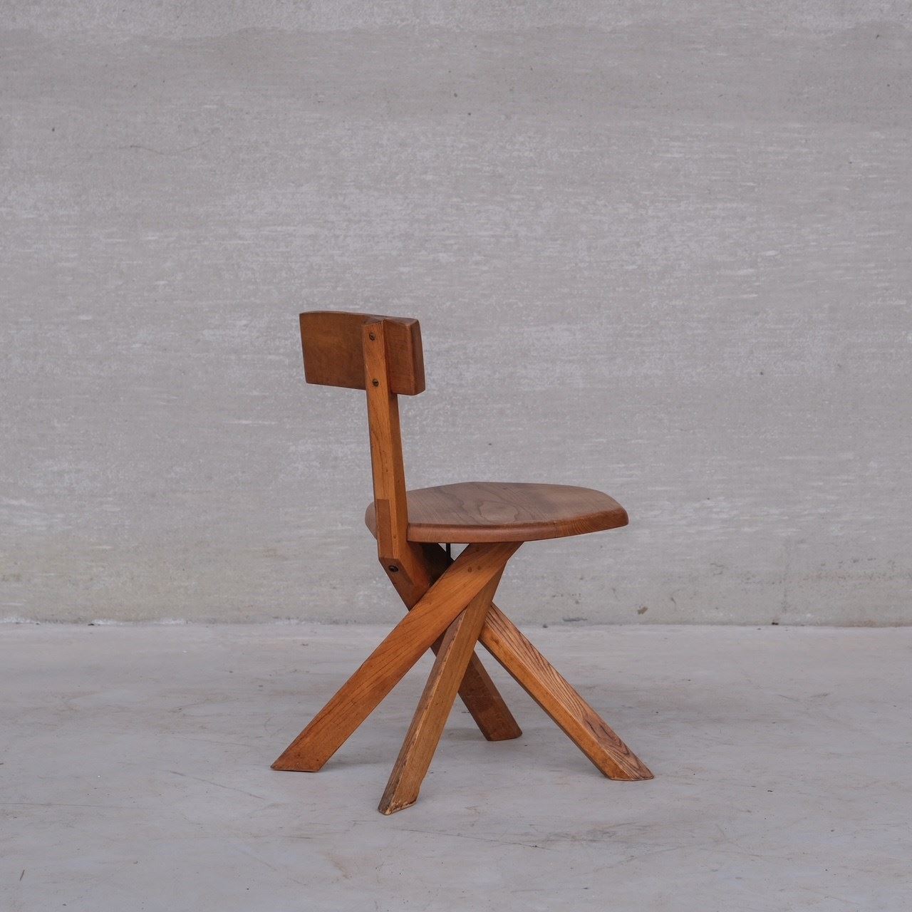 A rare elm desk or dining chair by Pierre Chapo.