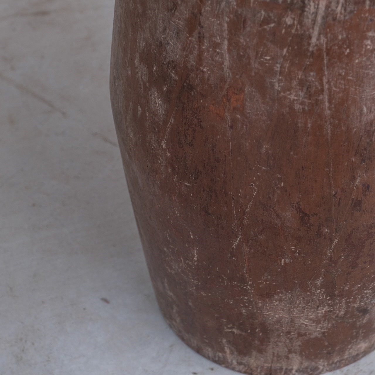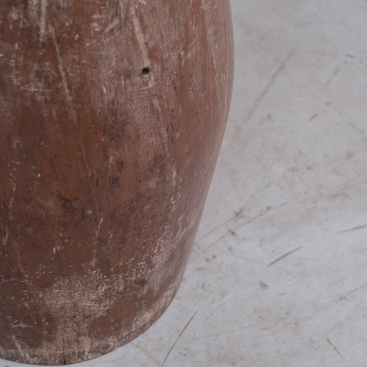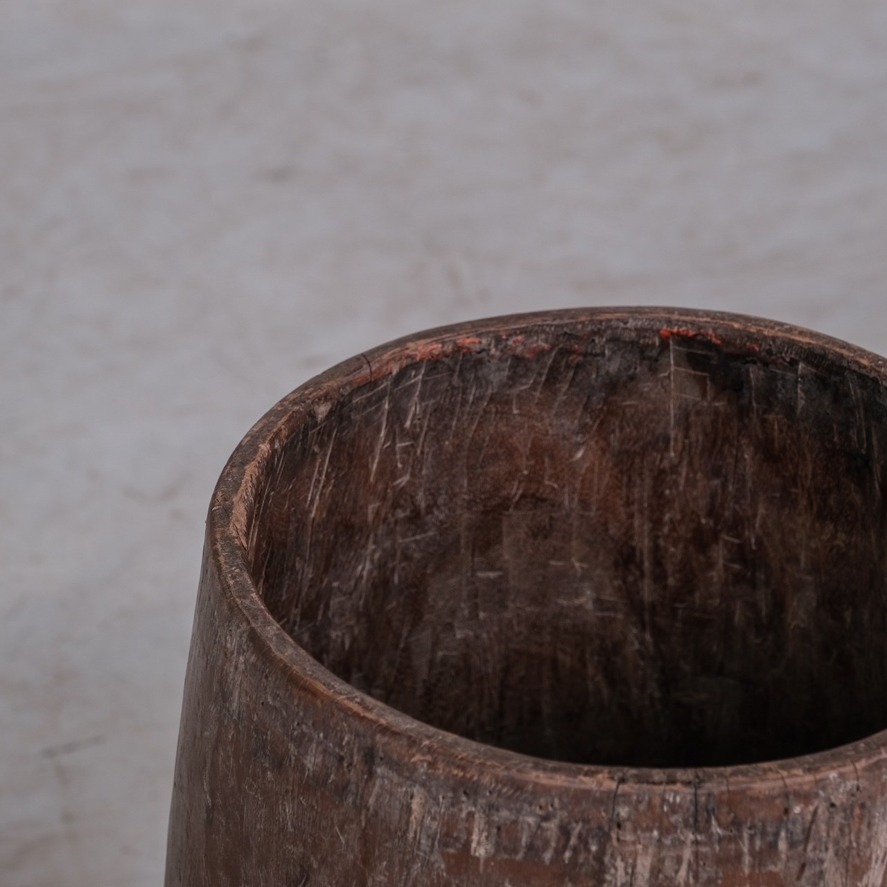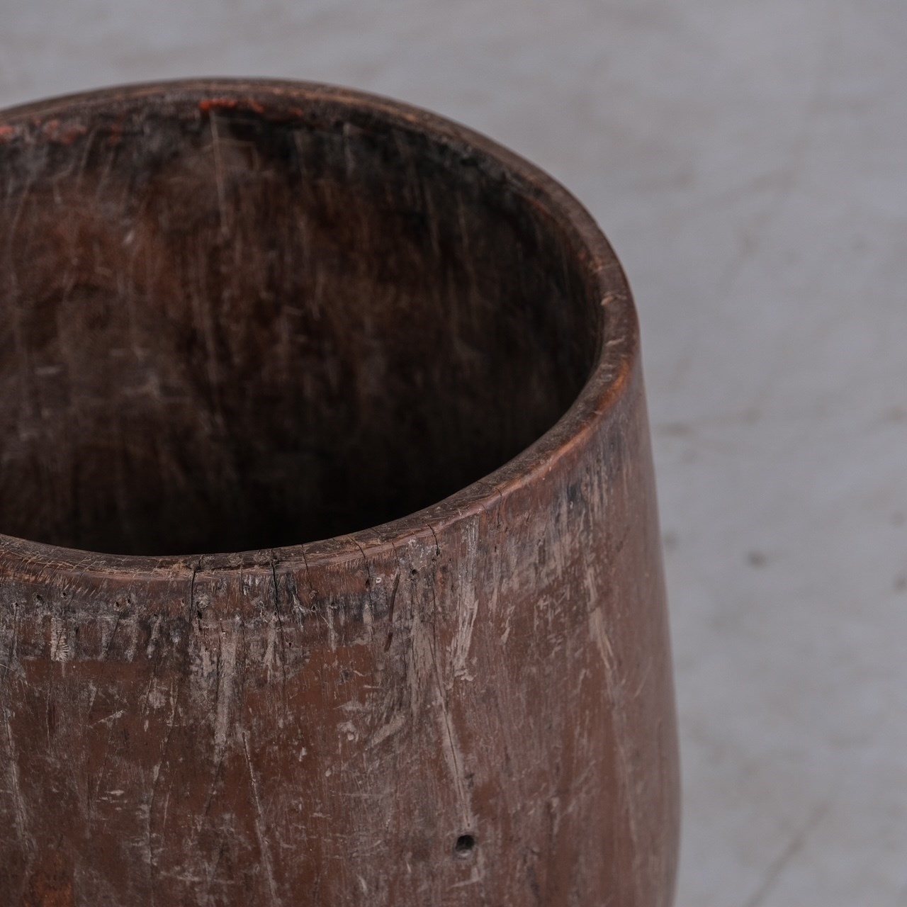 A primitive hollowed wooden circular planter or stick stand.